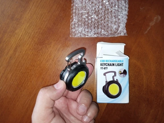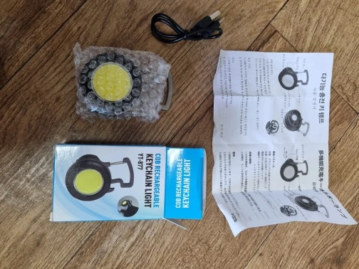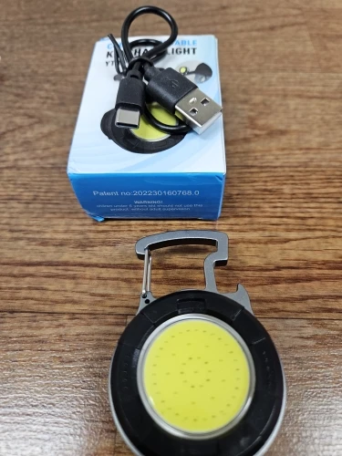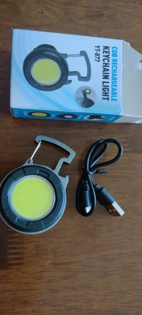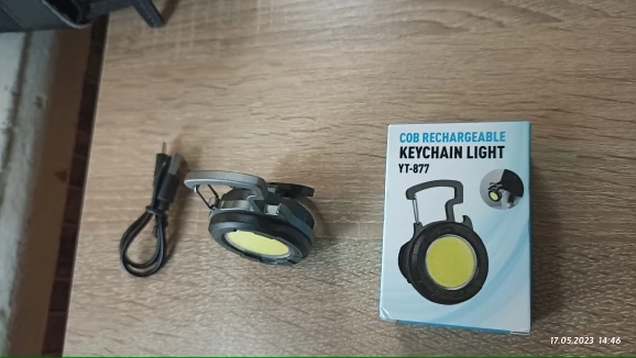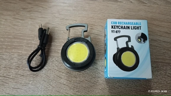Брелок полезный и очень яркий; К сожалению, внутри упаковки (открытый) отсутствует зарядный кабель.