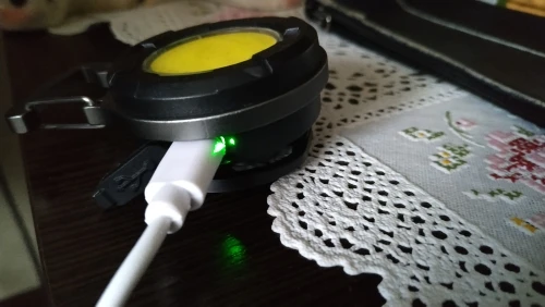 Светодиодная фонарик идентичен описанию объявления. Очень хороший фонарик с несколькими режимами освещения; Несколько интенсивностей белого света и 2 режима красного света (статический и мигающий). Это довольно практичный предмет, который мы транспортируем или используем его в качестве приборной лампы, регулировочной ноги на спине и зажимом или крючком плюс, это рекламируемое значение 650Mha, скорее неплохо для маленькой лампы.