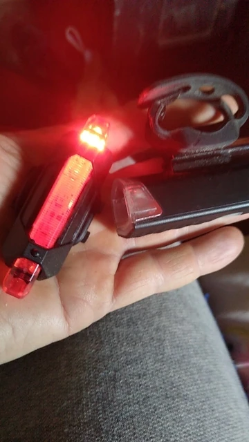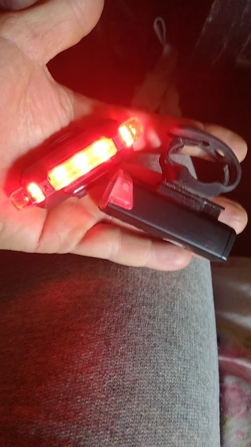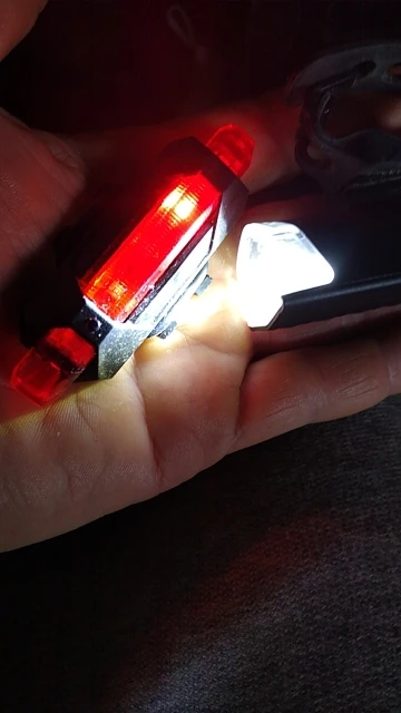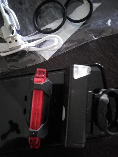 Передний фонарик на картинке кажется больше, чем на самом деле. Светит достаточно хорошо. Задний сигнальный фонарик отличный.