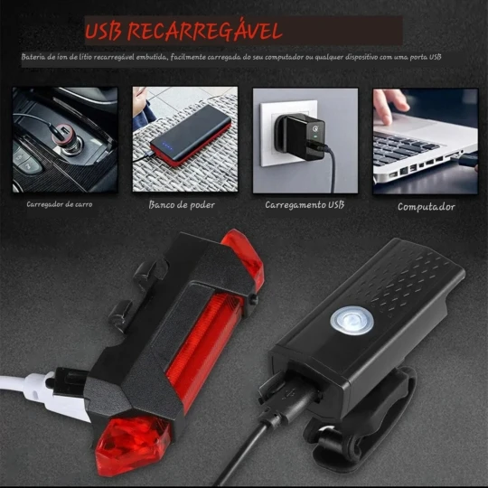 Перезаряжаемый от USB велосипедный фонарь, Передний фонарь с задним фонарем, легкая установка, 3 режима, велосипедные аксессуары для велосипе...