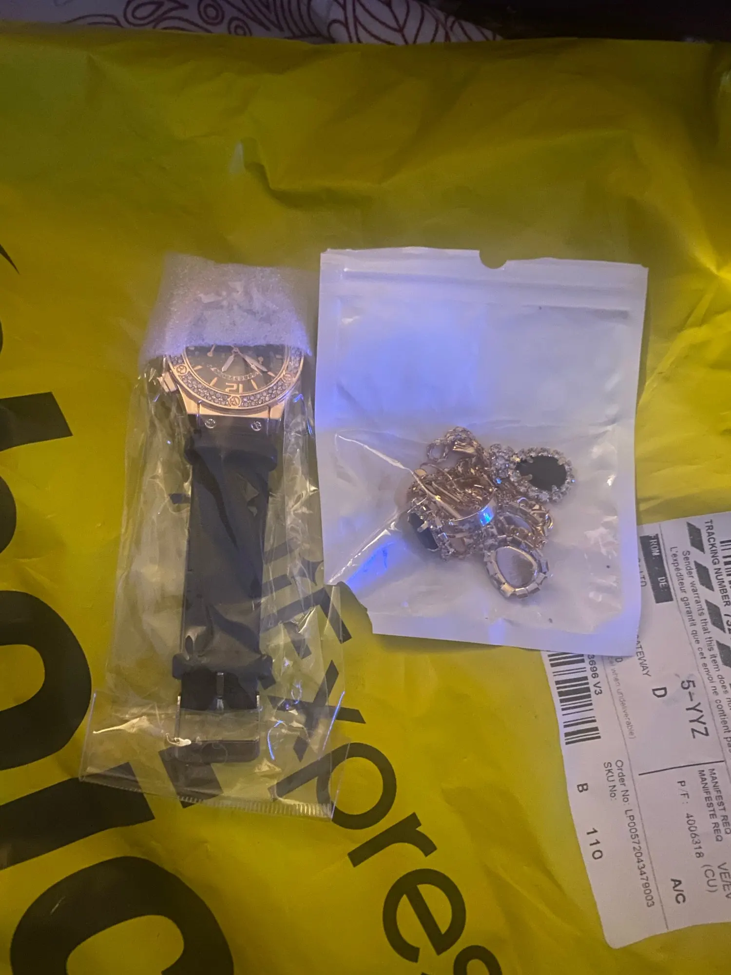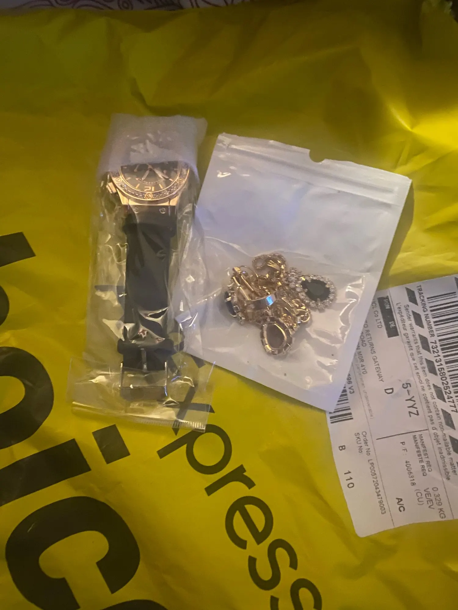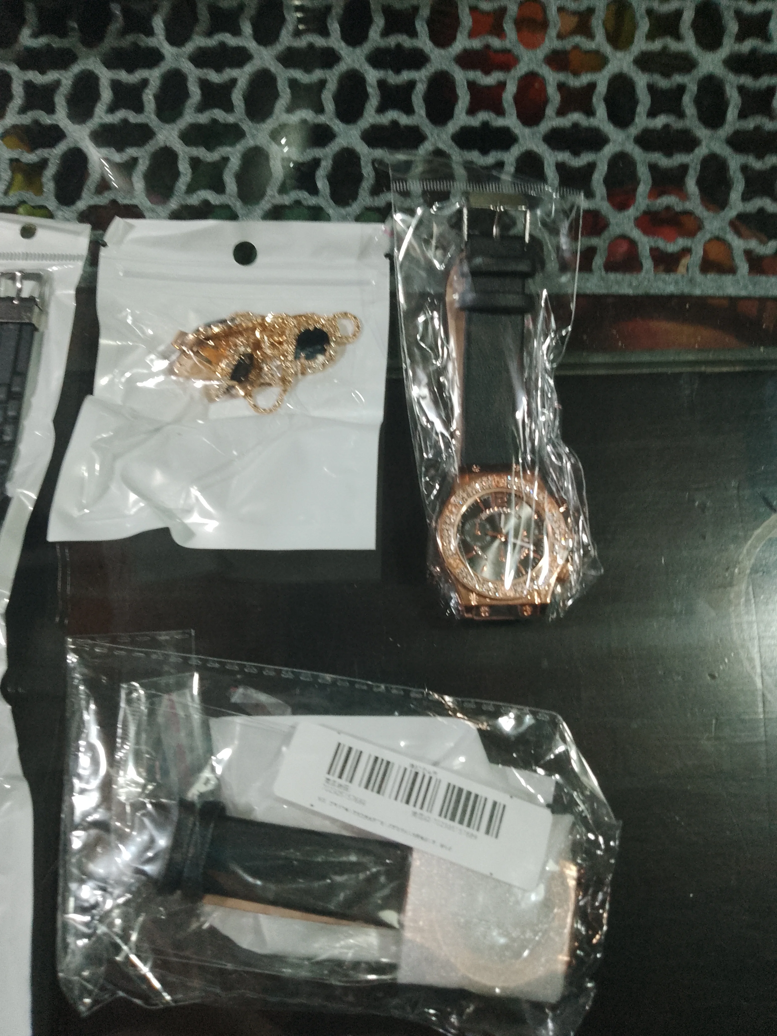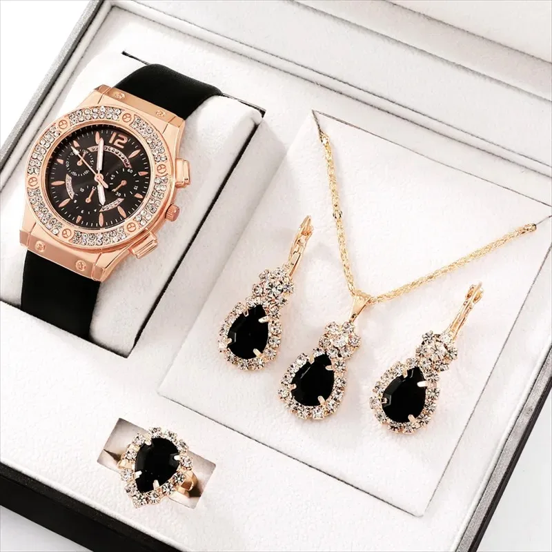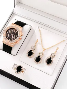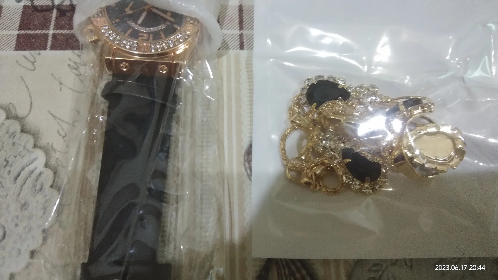 Заказан 02.04.2023, получен 26.04.2023. Часы выглядят очень красиво, кольцо регулируется, ожерелье немного маленькое, но кулон и серьги, а также кольцо имеют очень красивый дизайн с черной каплей воды, окруженной стразами. Набор выглядит стильно, и я рекомендую его.