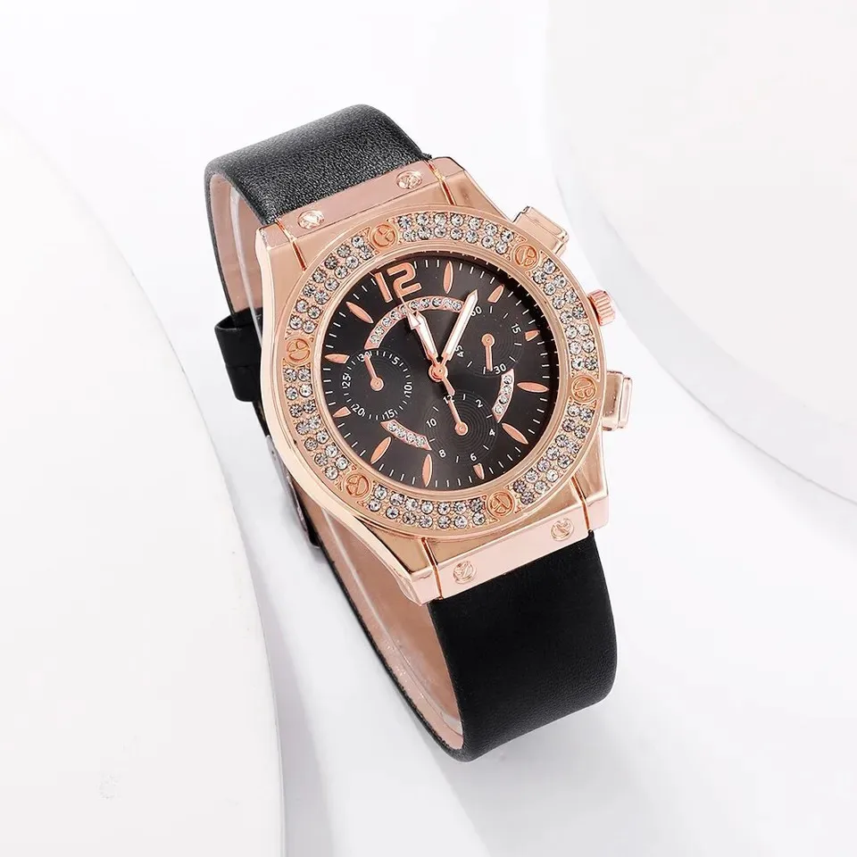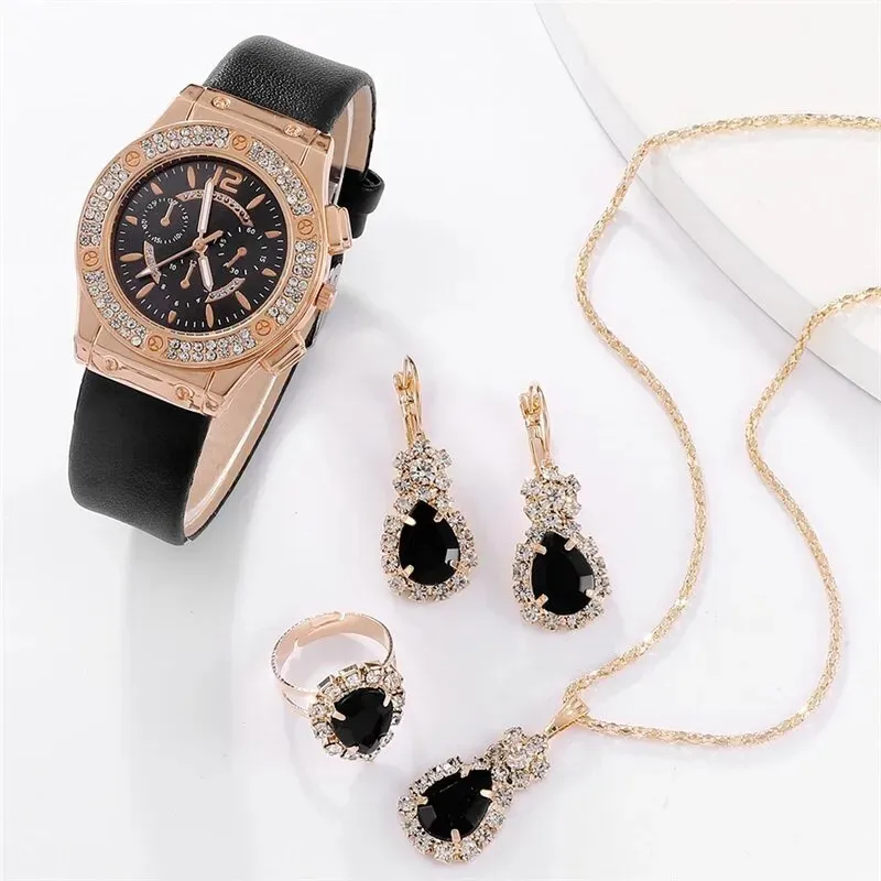 5 шт. набор часов для женщин кожаный ремешок женские часы простые повседневные женские аналоговые наручные часы браслет подарок Montre Femme