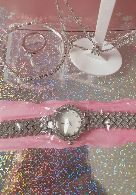 Очень красиво, просто не заблуждайтесь, часы не работают. Приходит все еще, и нет возможности исправить. Остальные очень красивые. Браслет эластичный.