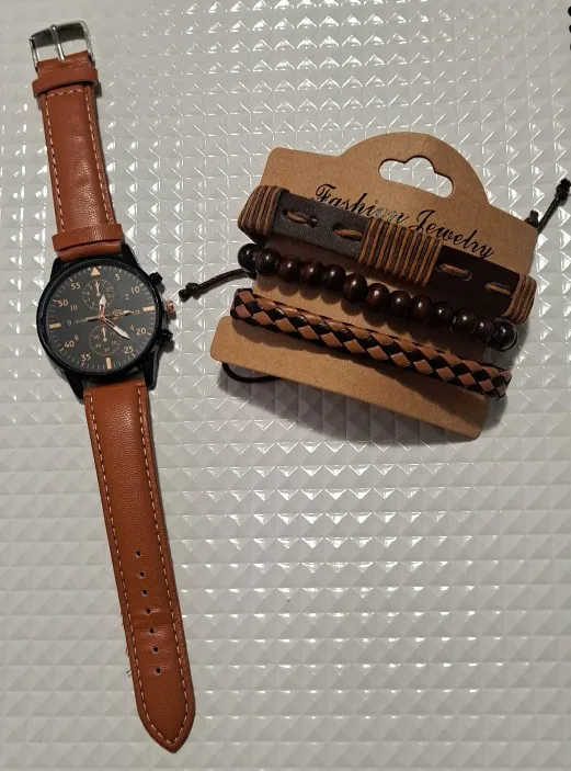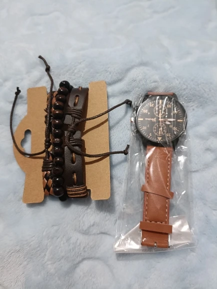 Хороший набор часов и браслет. Пришел в пластиковом, а не в коробке, только отрицательный