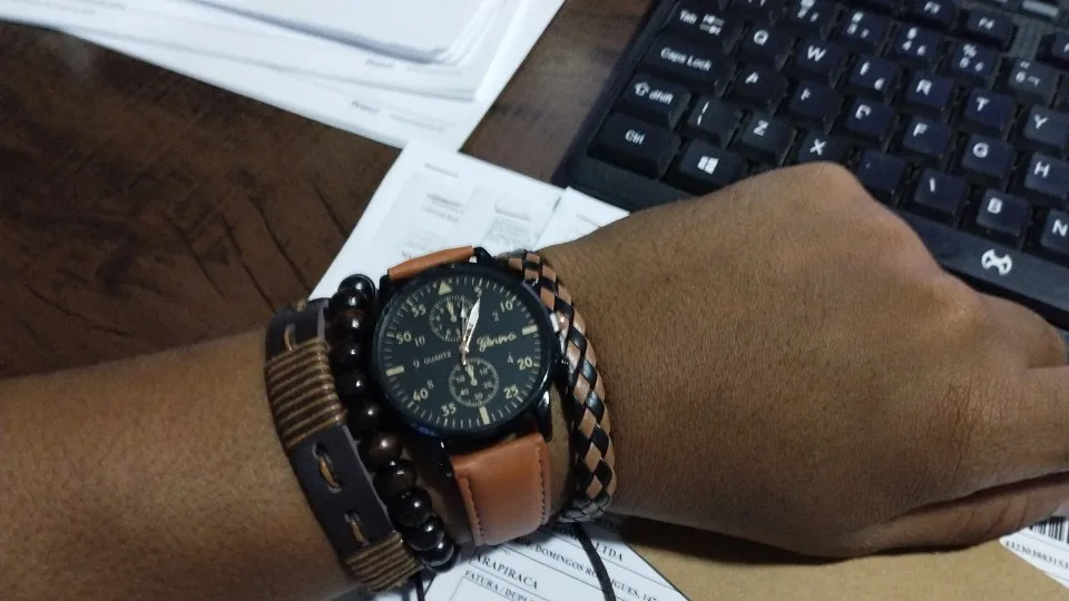 Я немного боялся качества, но в конце концов я остался доволен. Простые часы, но с хорошими материалами и хорошей отделкой. Имеет кожаный браслет, и они уже видят его с кучей. Ворс не изнашивается, потому что он поставляется с частью, которая предотвращает попадание кнопки внутрь, но как только мы это делаем, он начинает работать. Очень красиво и шикарно. Сопровождает набор из 3 браслетов в коже, все очень просто и красиво. Очень приятный и Учетный набор, и поэтому можно использовать часы в соответствии с туалетом, не тратя целое состояние. Благодарен всем