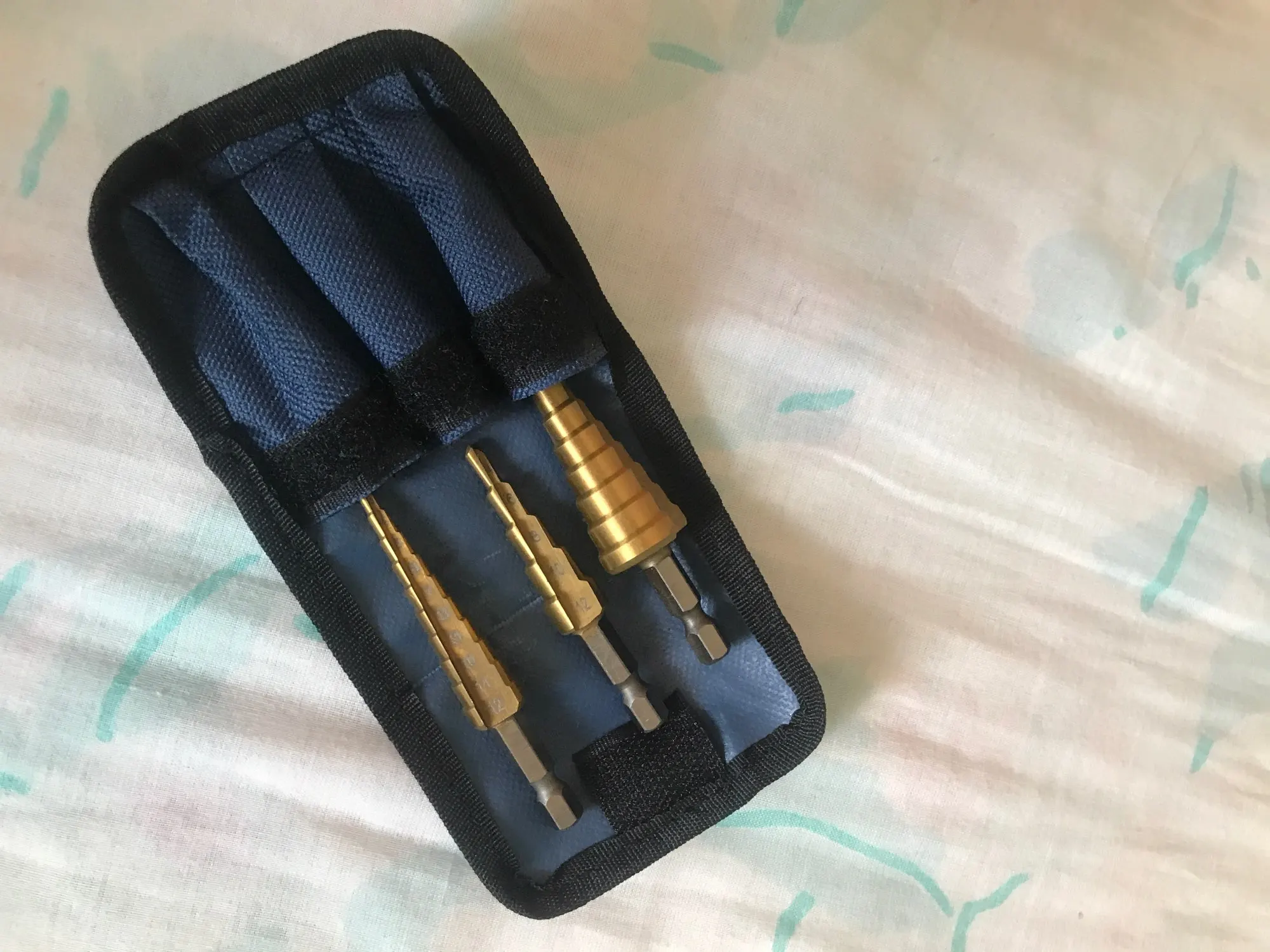 Хороший набор конических сверл. Теперь без проблем просверлили/увеличили отверстия на нескольких пластиковых изделиях.