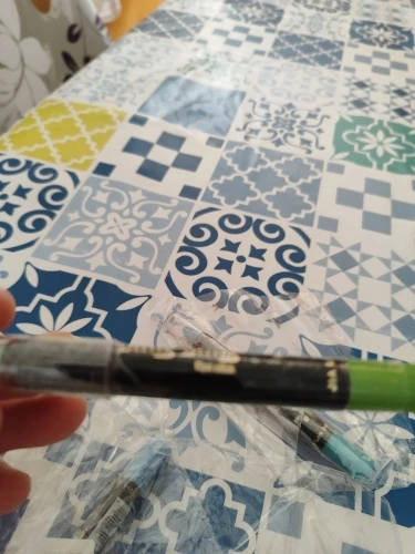Цвет мне показался бледнее, чем на картинке. Стержень сломался. В принципе за такую цену пользоваться можно. Доставка быстрая