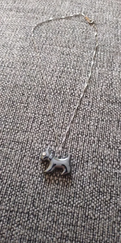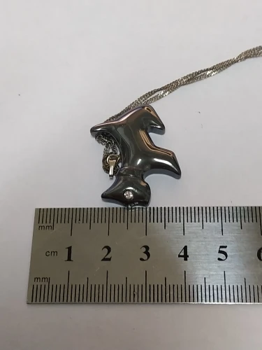 Это так же, как на картинке. Это очень хорошо сделано. Я заказал его 1 ноября и получил 17 ноября. Я купил его со скидкой, и он был очень хорош по цене. Я рекомендую это 100%. Он поставляется с цепочкой, которая мне не очень нравится, потому что она темная, я не знаю, из какого материала цепь будет сделана. Собака из Натурального Гематита.