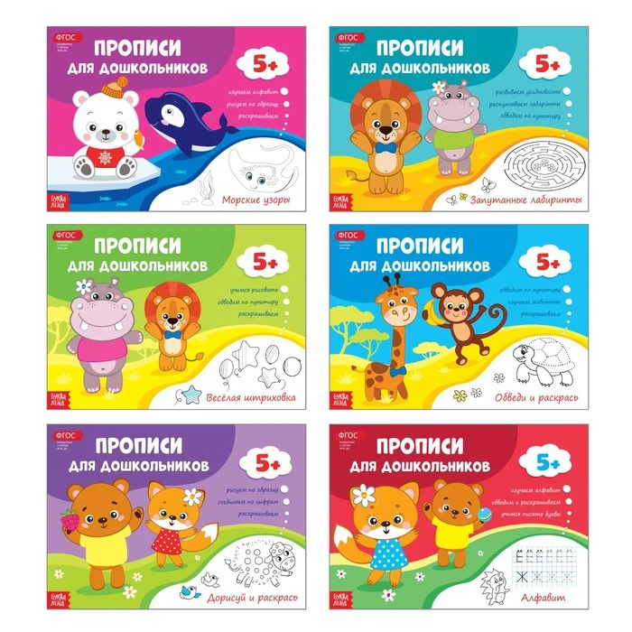 Прописи набор для дошкольников, 6 шт. по 16 стр.