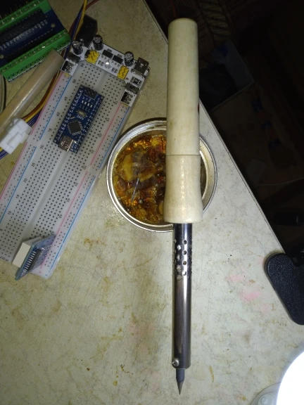 Получил свой паяльник сегодня. Паяльник печальный - нагревательный элемент греет до красна, явный перекал, можно прожигать бумагу и прикуривать сигареты от жала (проверено). При пайке на мусорной печатной плате от такой температуры отваливаются дорожки и горит текстолит... Разве что провода таким паять или использовать регулятор напряжения на шим, чтобы снизить температуру... ну либо использовать в качестве инструмента для пыток... даже 122 рубля по акции за него жалко, зажигалка стоит дешевле, а регулятор напряжения для него дороже....