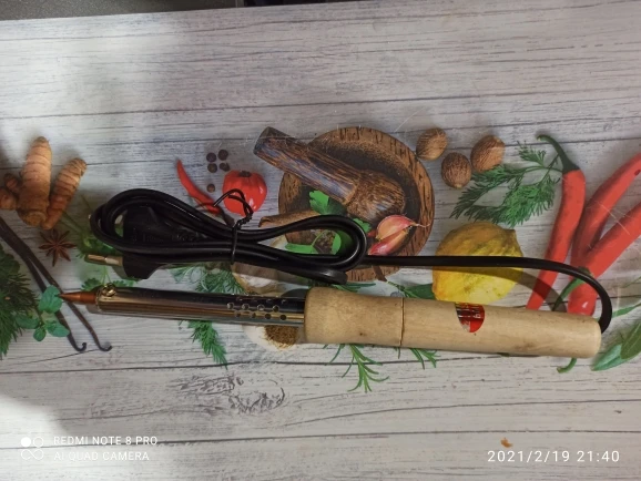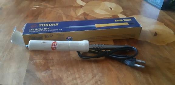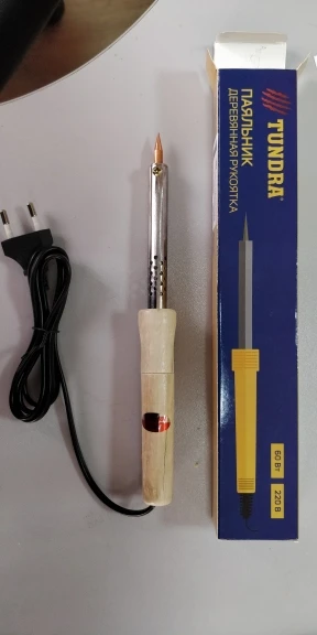 Аккуратный небольшой паяльник, ручка деревянная. Легкий удобный, нагревается довольно быстро, не паяльная станция конечно, но зато дёшево и сердито:)