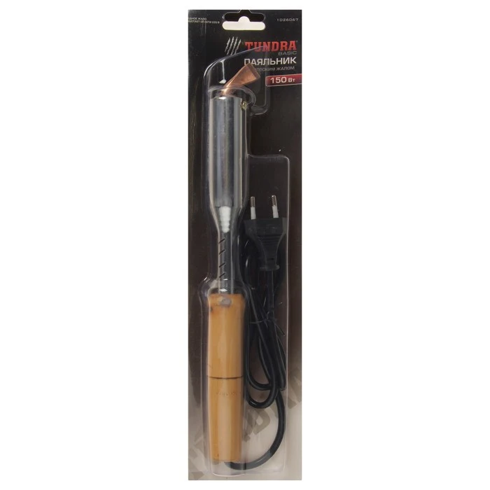 Паяльник TUNDRA, деревянная рукоятка, плоское жало, 150 Вт, 220 В