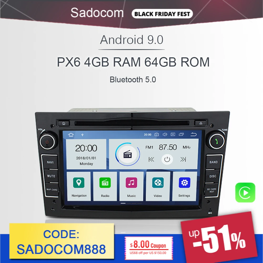 Автомобильный DVD-плеер PX6, Android 10,0, 6 ядер, 4 Гб ОЗУ, 64 Гб ПЗУ, радио для Opel Zafira, Vectra, Antara, Astra H G Combo, Corsa, Meriva, Vivaro