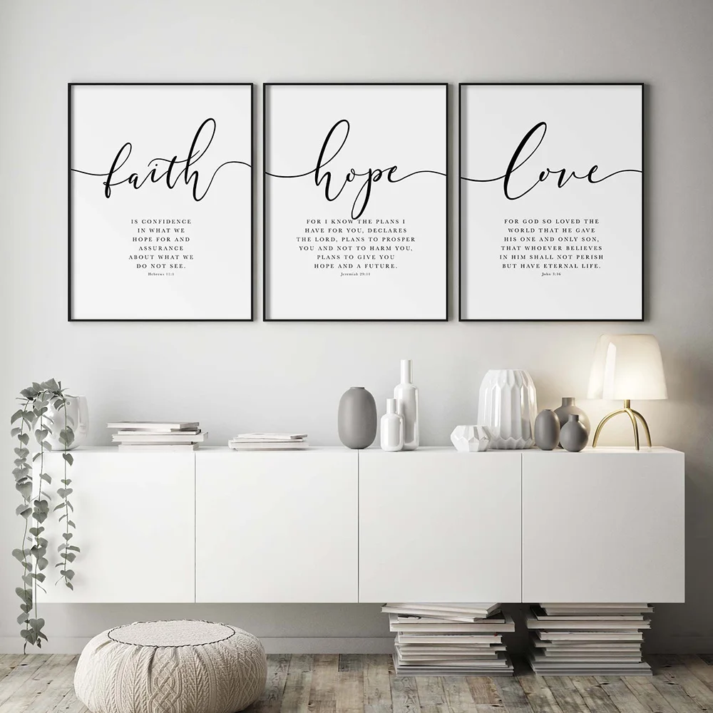 Библейский стих, Постер и печать, Вера, Надежда, любовь, искусство, печать, христианские цитаты, холст, живопись, гостиная, настенные постеры