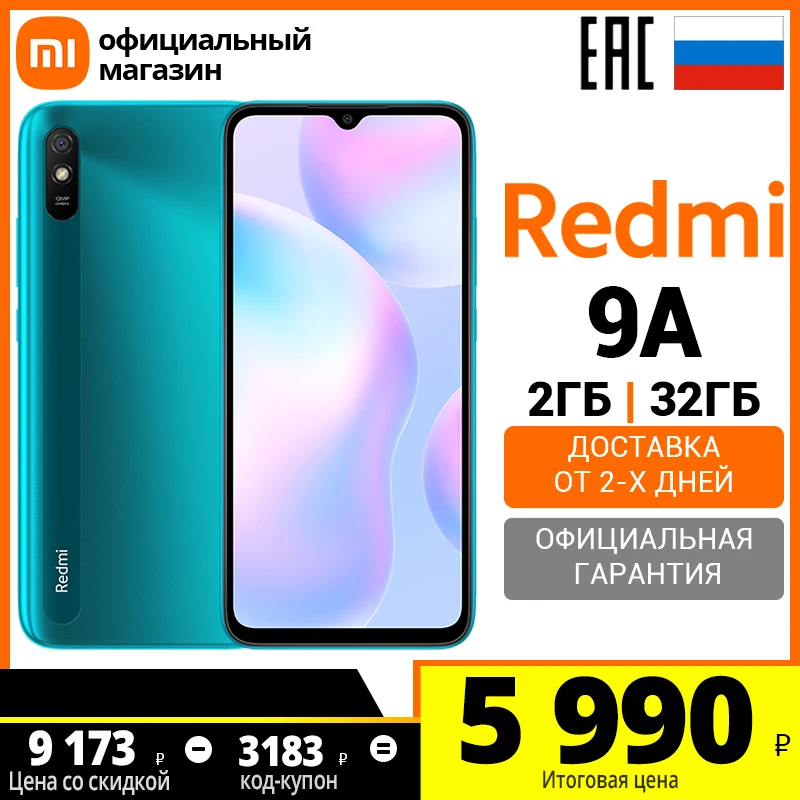 Смартфон Xiaomi Redmi 9A 2 + 32ГБ (Российская официальная гарантия)