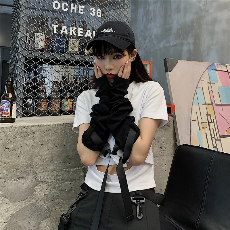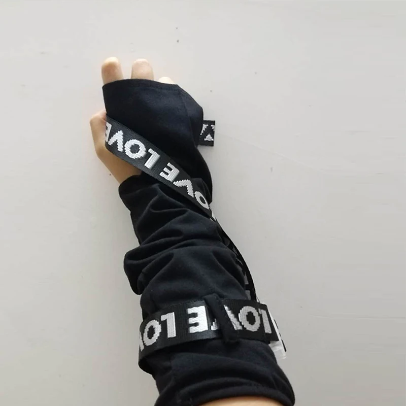 Крутые черные панк перчатки унисекс без пальцев регулируемые манжеты с пластиковой пряжкой ниндзя длиной до локтя готические Варежки женские грелки для рук