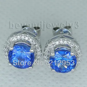 Женские серьги, винтажные круглые серьги-гвоздики из танзанита AAA 7 мм, серьги из 18-каратного золота с бриллиантами, Φ E0053 icon star icon star icon star icon star icon star