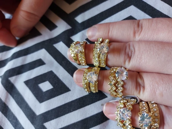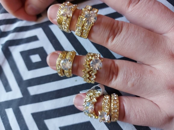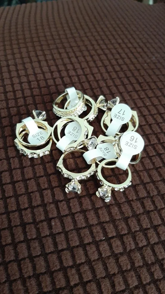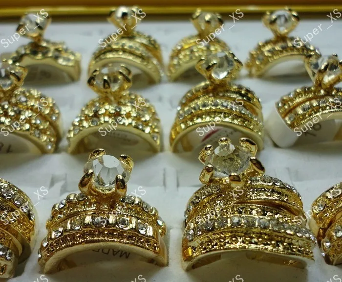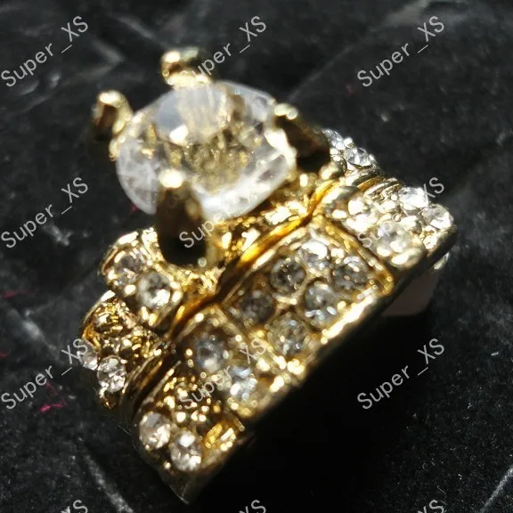 12 шт.6 пар хит! Золотые кольца 2 в 1 с цирконием, стразы, для женщин, ювелирные изделия оптом лотов, бесплатная доставка LR036