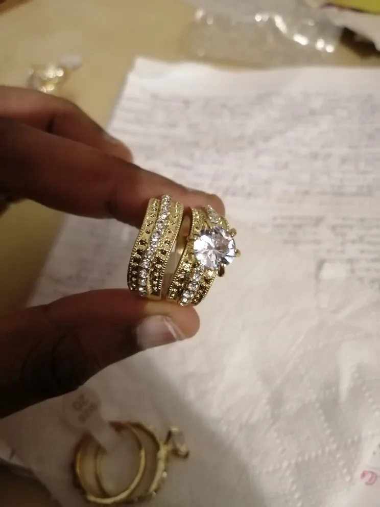 Красивый комплект. Золотой цвет выглядит как настоящий. Хорошие размеры по размерам.