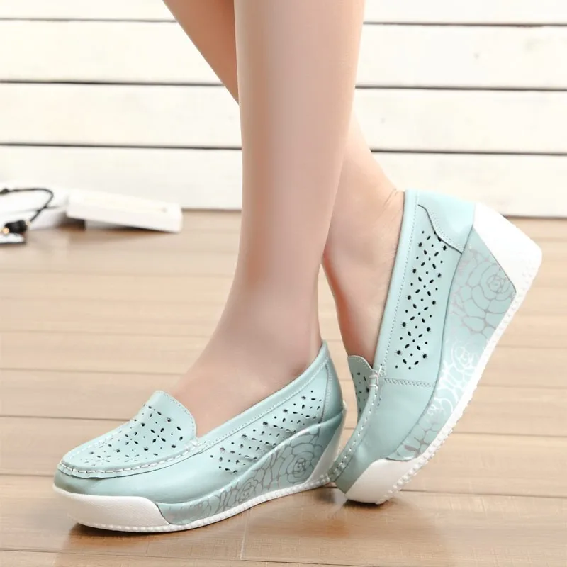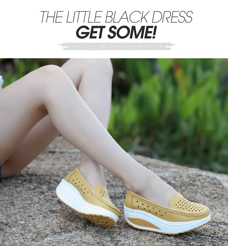Туфли женские из натуральной кожи, дышащие качели, на танкетке, выр...