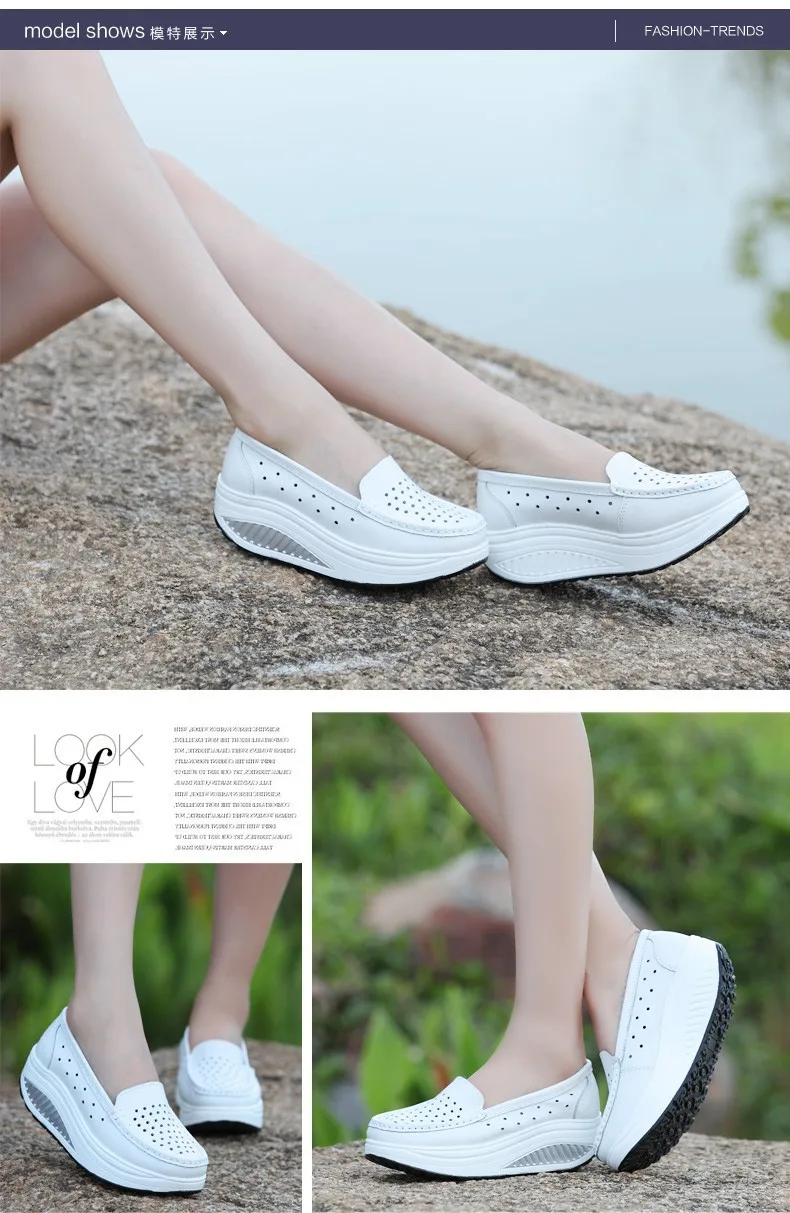 Летняя женская обувь MudiPanda из натуральной кожи, дышащая женская обувь, Рабочая обувь для медсестер на платформе, 2017
