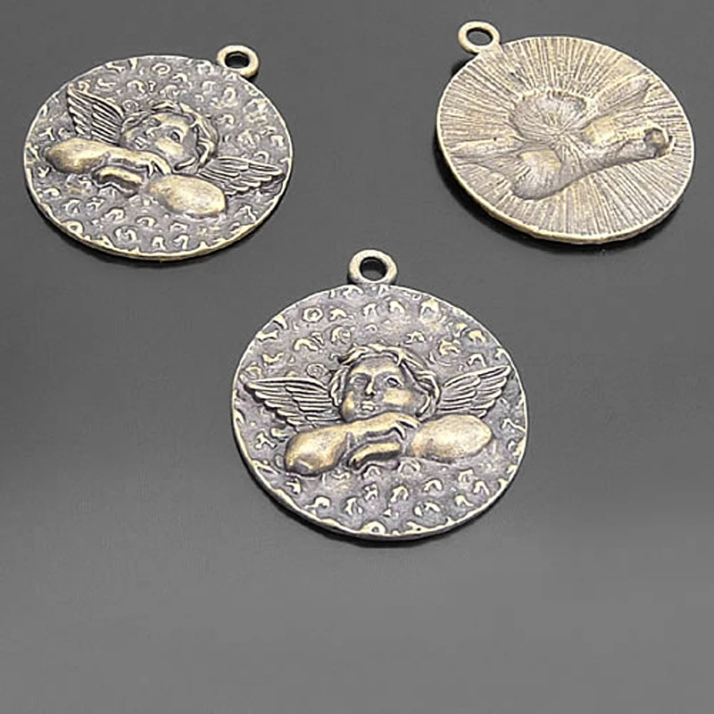 Оптовая Продажа 39 мм старинный Бронзовый Ангел сплав плоские шармы Подвески DIY фурнитура Аксессуары 10 шт. (JM841)