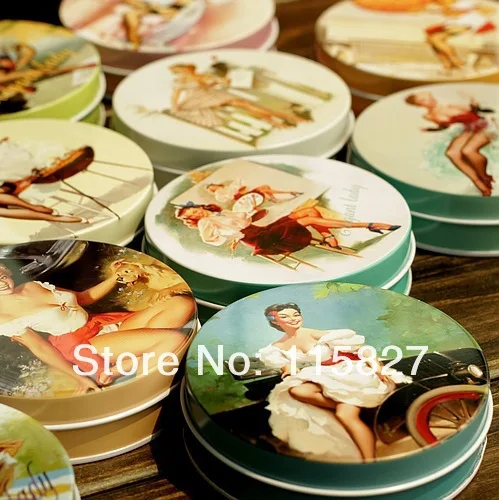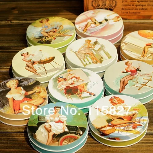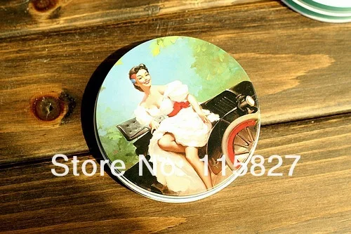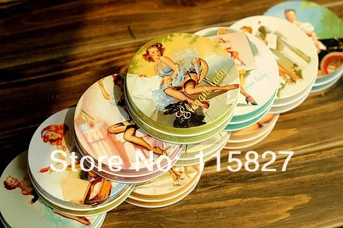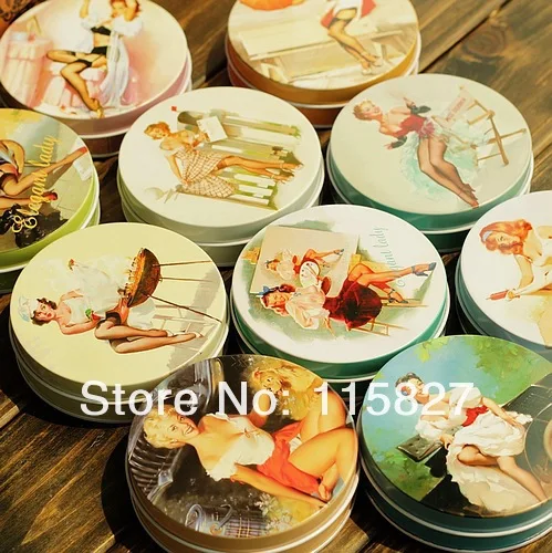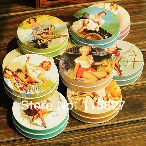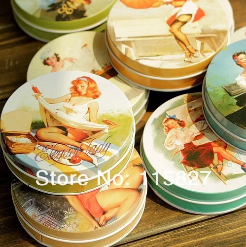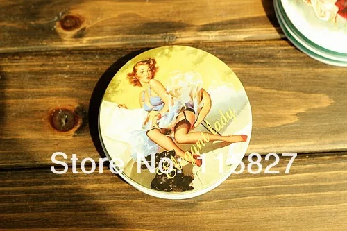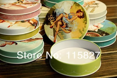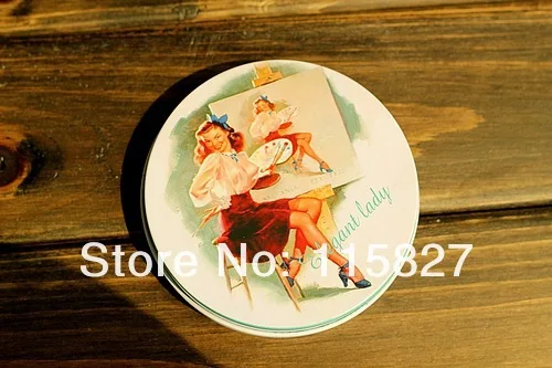 Бесплатная доставка! 10 шт.лот Винтажный стиль Классическая Женская круглая жестяная коробка металлический ящик для хранения Ретро футляр для ювелирных изделий коробка для конфет футляр для таблеток