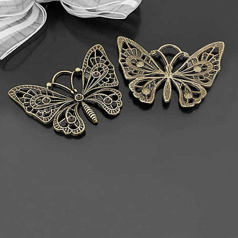 Оптовая продажа 48*35 мм Античная бронзовая Большая Бабочка сплав плоские талисманы подвески для творчества аксессуары 10 шт. (JM1792)