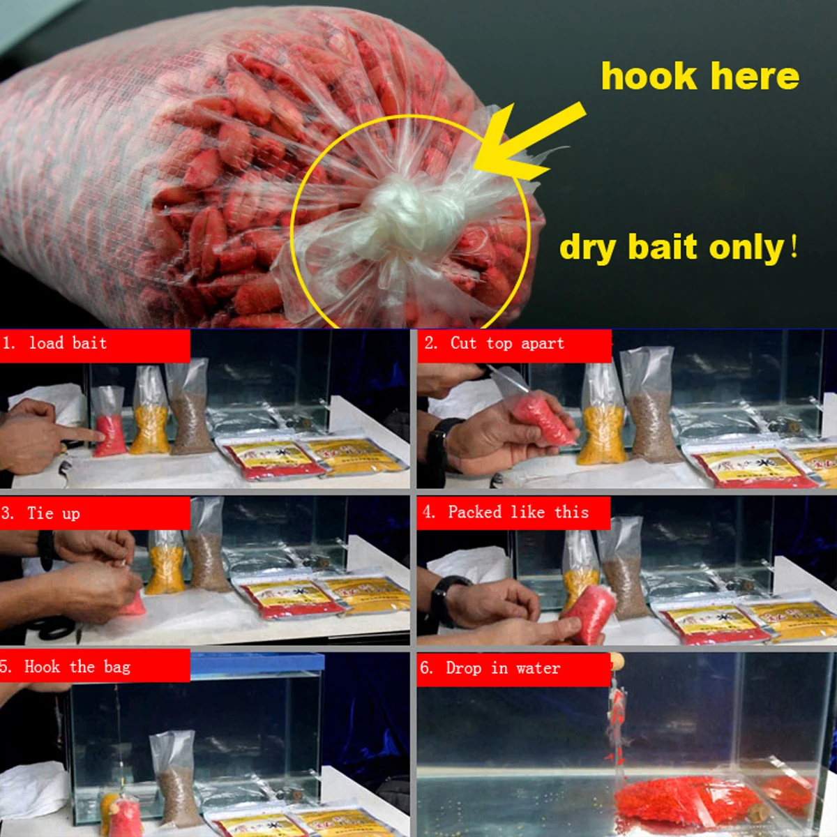 50 шт., мешок для ловли карпа, PVA, для грубой ловли карпа, кормушка для наживки, 4 размера, 7X15 см, 5X10 см, 8X12 см, карпинг-Снасти