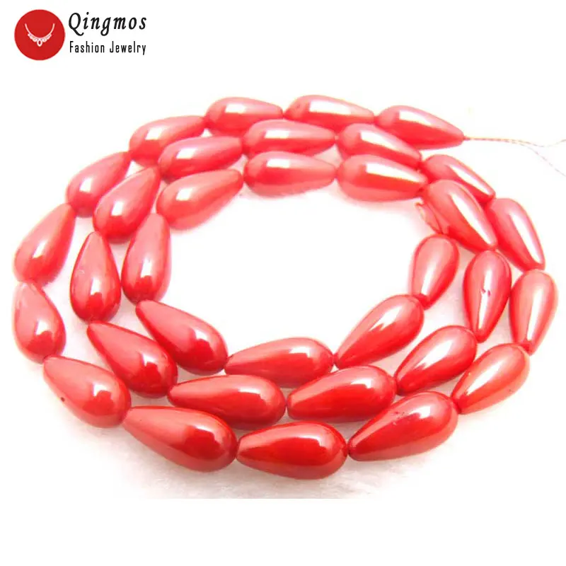 Серьги-подвески Qingmos 4*8 мм, натуральные красные коралловые свободные бусины, ожерелье, браслет, серьги, нитка 15 дюймов, los548