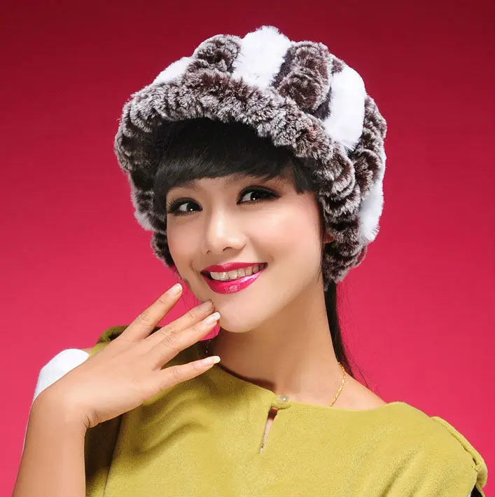 Настоящий мех кролика шапка козырек Лыжная Шапка basedball головные уборы Бейсбольная женская шапка, зимняя, хороший подарок для ребенка 13604