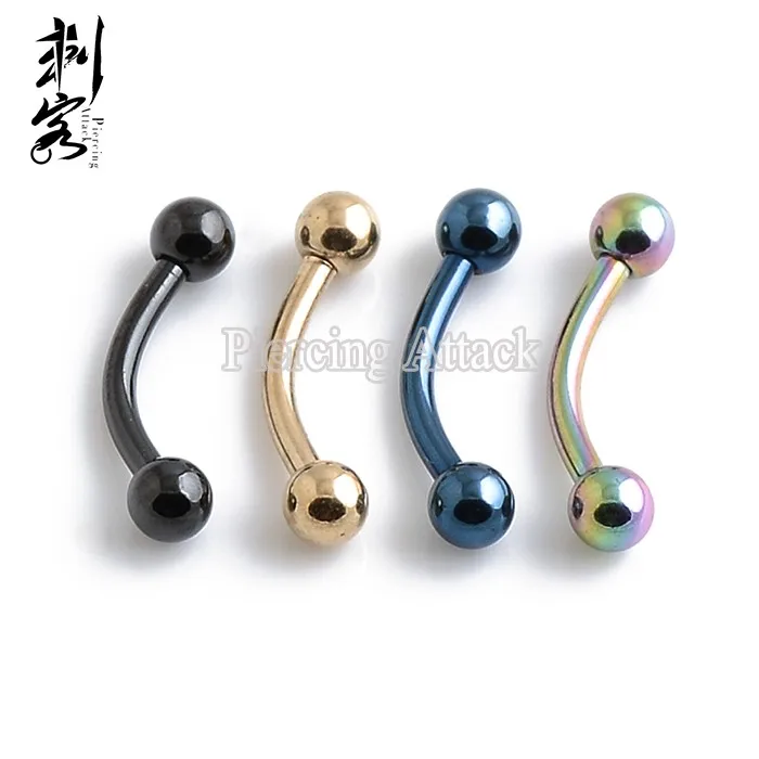 Бесплатная Доставка оптом 14 Калибр титановое покрытие кривая штанга титановое анодированное кольцо для бровей 1,6*8*4 мм