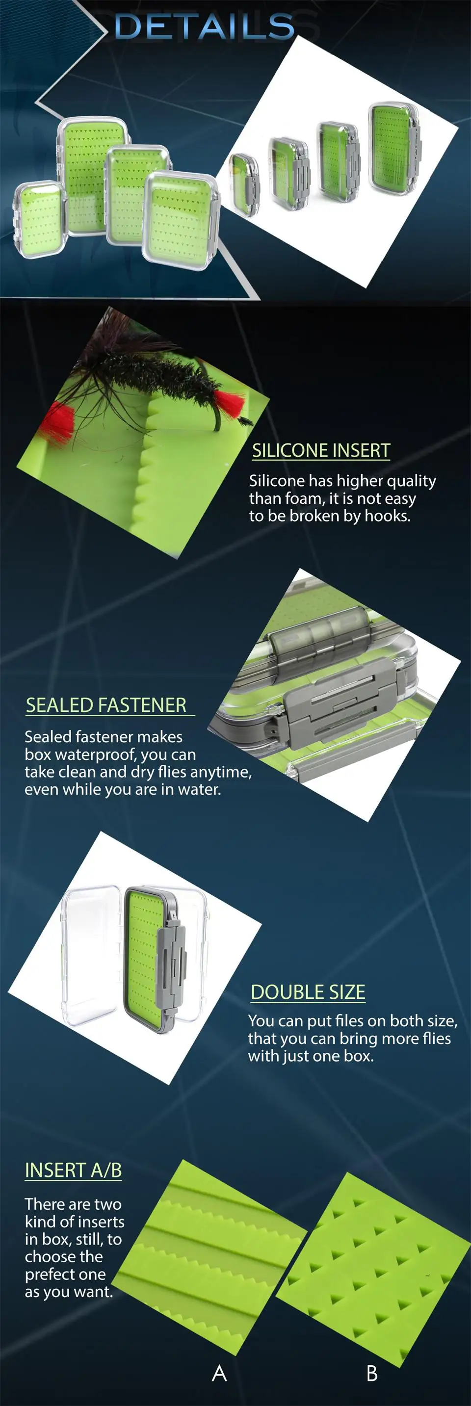 Ящик для ловли рыбы нахлыстом, 4 размера, из пеноматериала с прорезями и удобным захватом, двухсторонний, водонепроницаемый, пластиковые коробки для снастей прозрачный