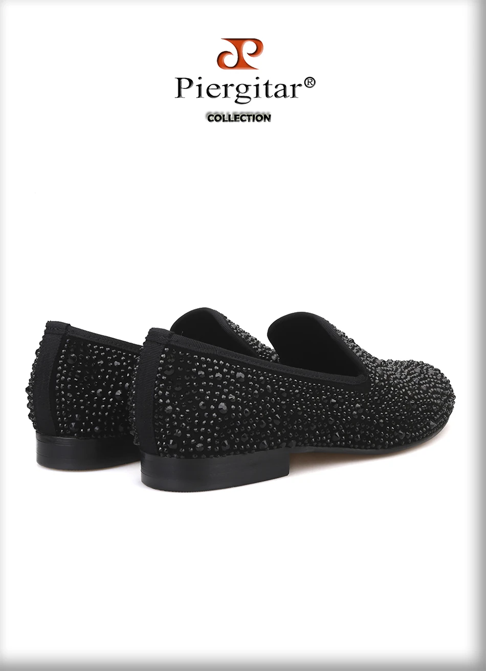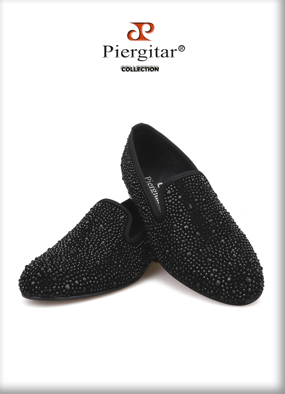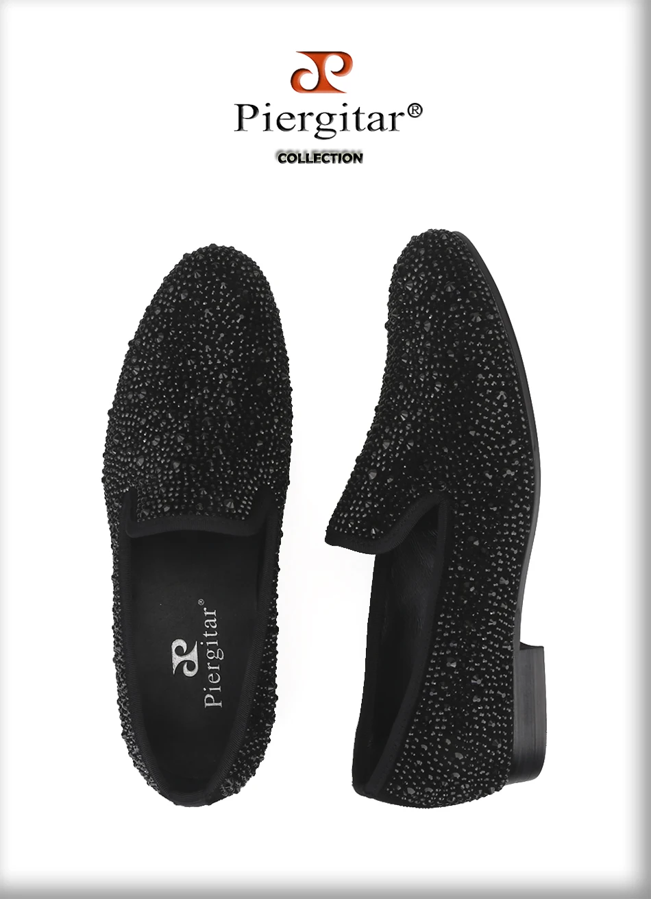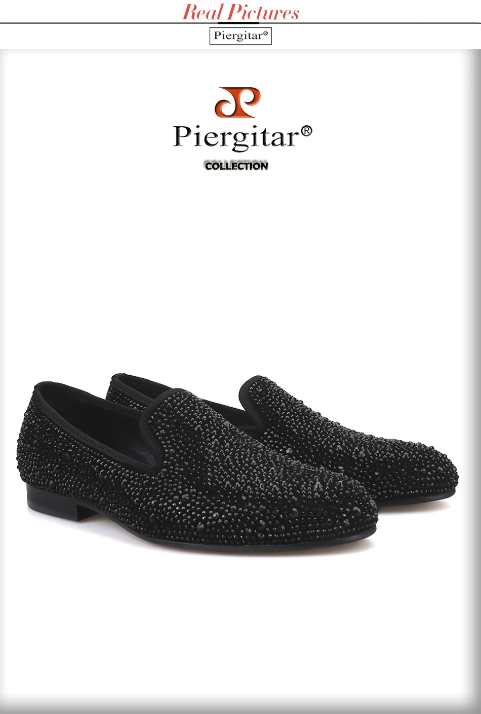 Мужские замшевые туфли Piergitar, черные туфли из натуральной кожи на плоской подошве, с кристаллами, мужские курительные тапочки, лоферы для выпускного вечера и вечеринки, 2019