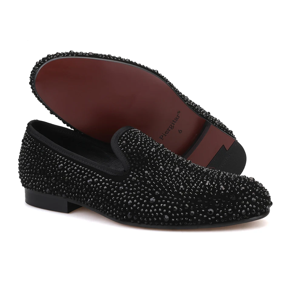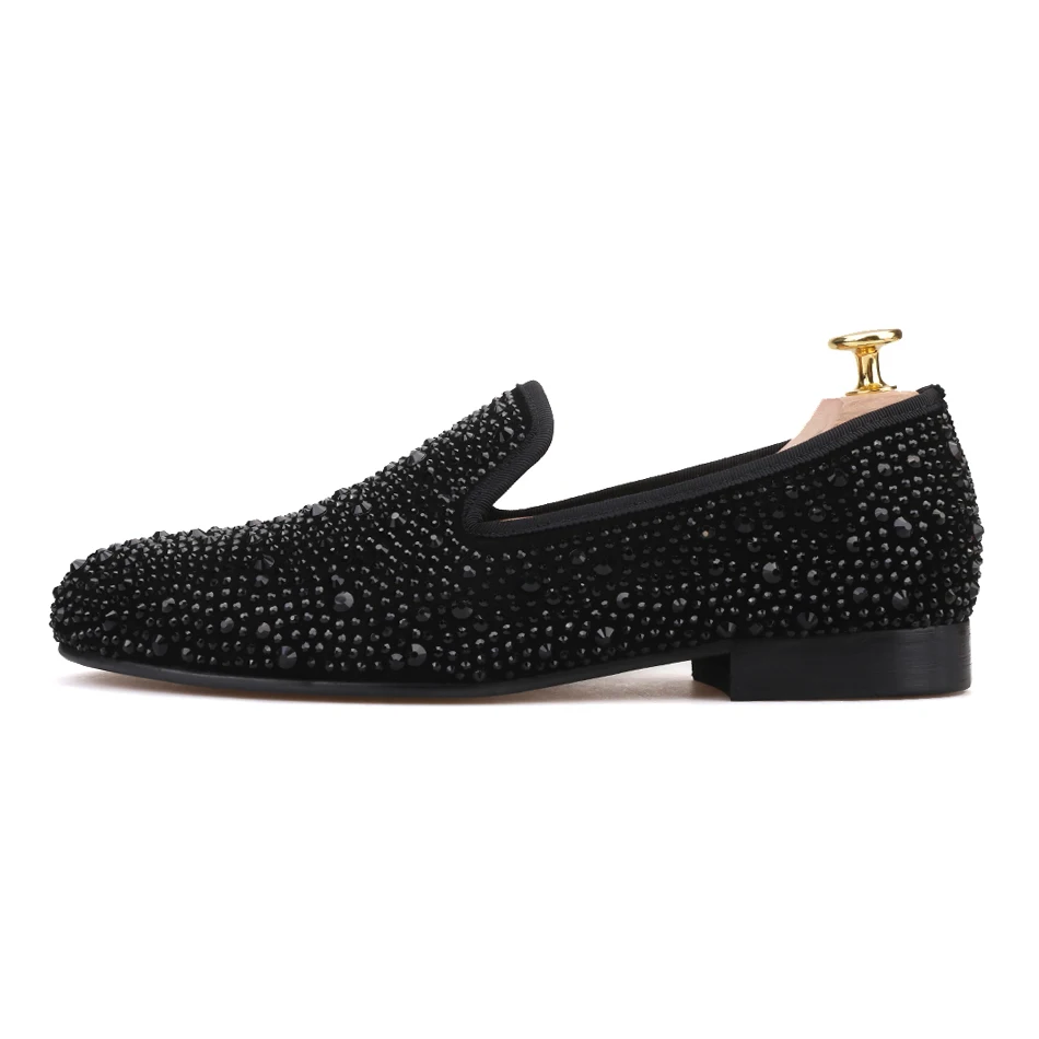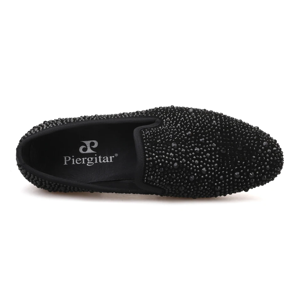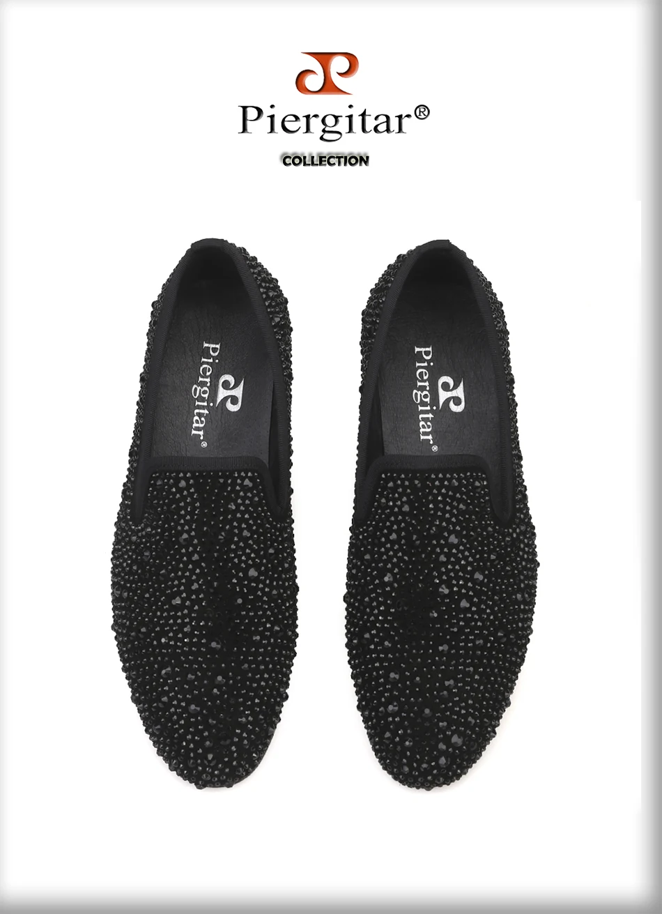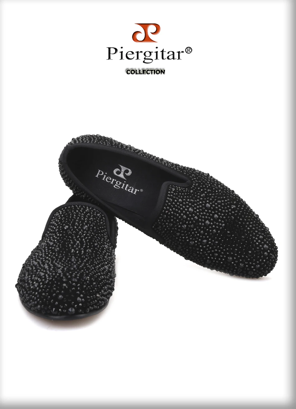 Мужские замшевые туфли Piergitar, черные туфли из натуральной кожи на плоской подошве, с кристаллами, мужские курительные тапочки, лоферы для выпускного вечера и вечеринки, 2019