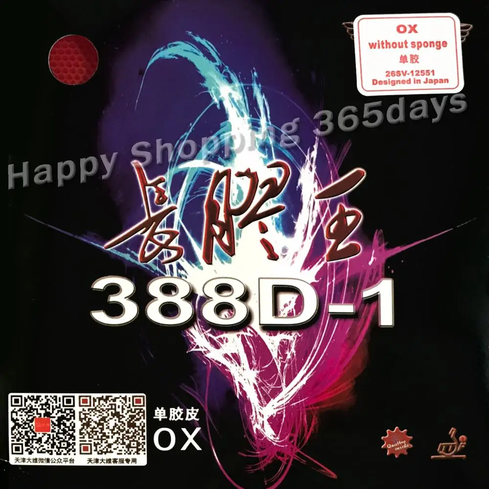 С 0,5, 0,8, 1,0 мм губка, 388D-1 Quattro позволяет производить динамично развивающейся атакующей игры, давят на противника с контратаки, лифтинг и порезы. С тонким губки (0,3 мм) каучук обеспечивает еще более негативный эффект при воспроизведении близко к столу.