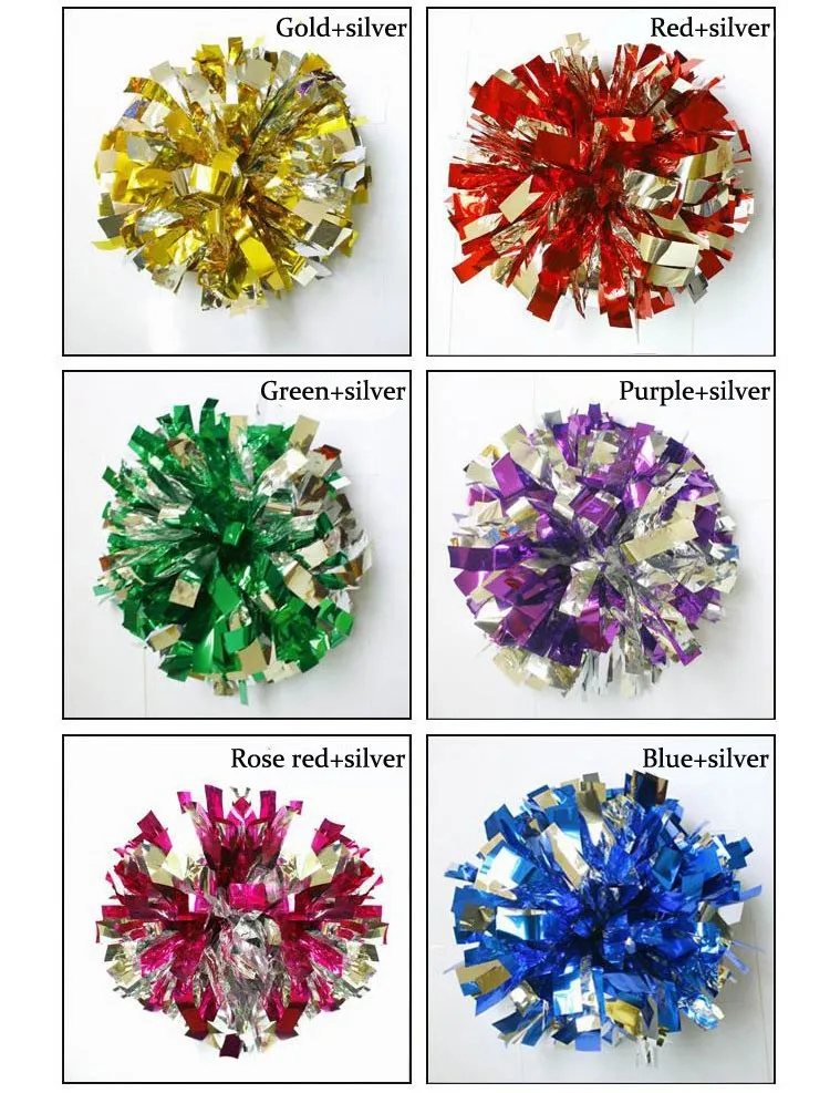 Помпоны для болельщиц (10 шт.лот) помпоны для чарлидинга, помпоны из ПВХ, цвет на выбор, ручка для колец