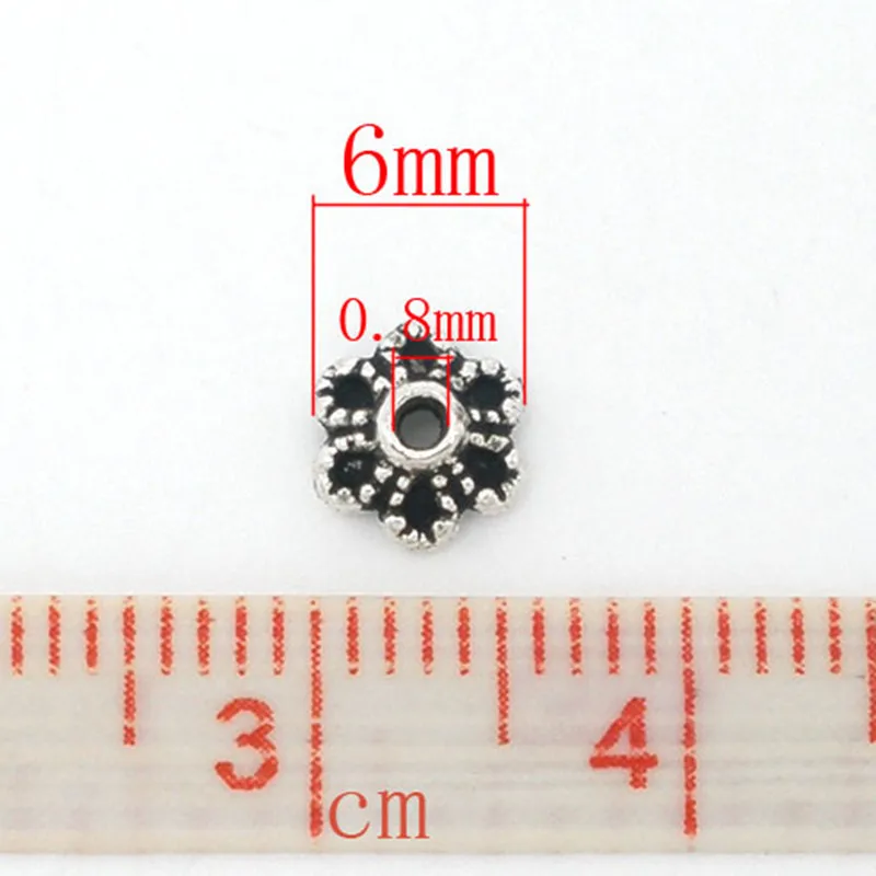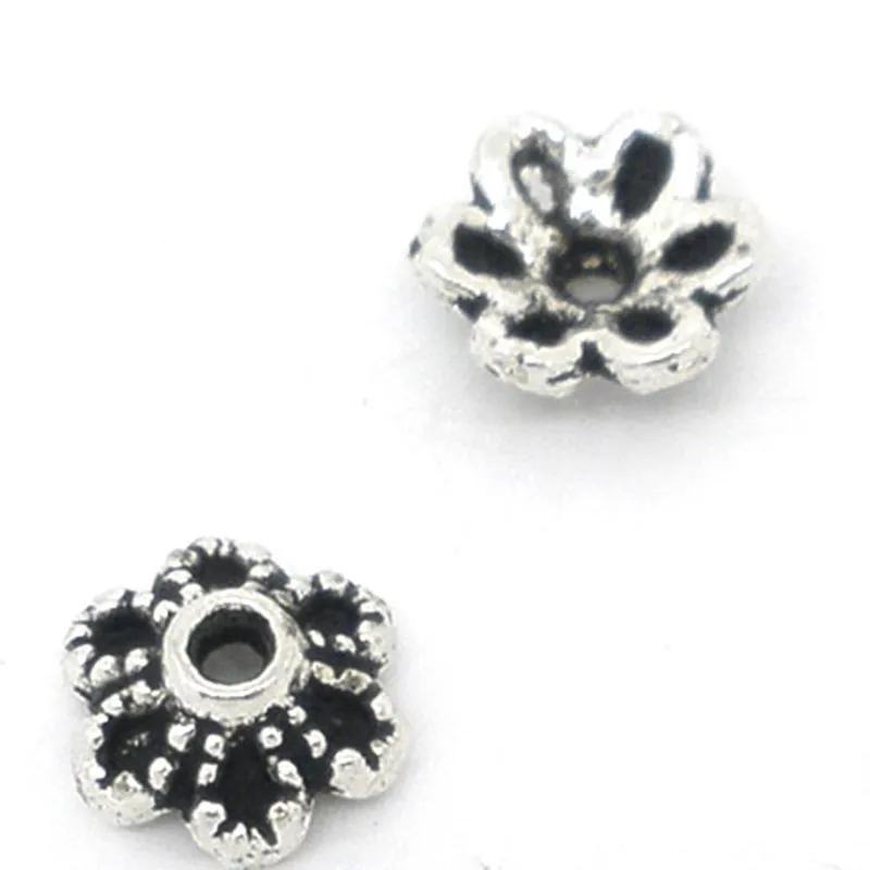 Бусины DoreenBeads из цинкового сплава, колпачки, цветок, античное серебро, для изготовления украшений (подходит для бусин 8-12 мм) 6 мм x 2,8 мм, 300 шт.