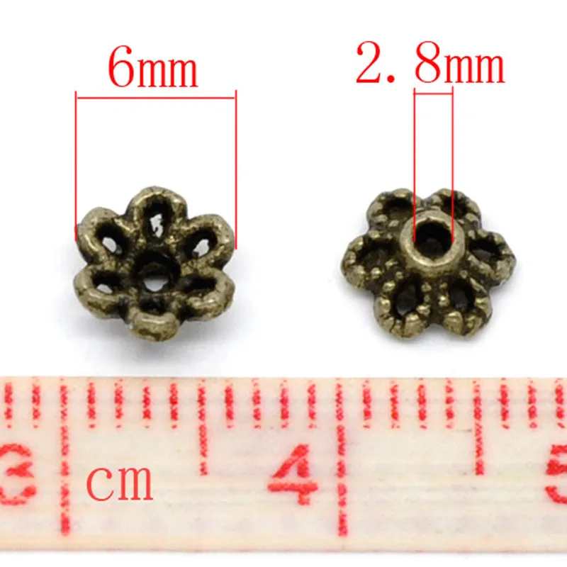 DoreenBeads металлические бусины колпачки цветок античный бронзовый цвет DIY Изготовление сережек ювелирных изделий (подходит для бусин 8-12 мм) 6 мм x 2,8 мм, 300 шт.