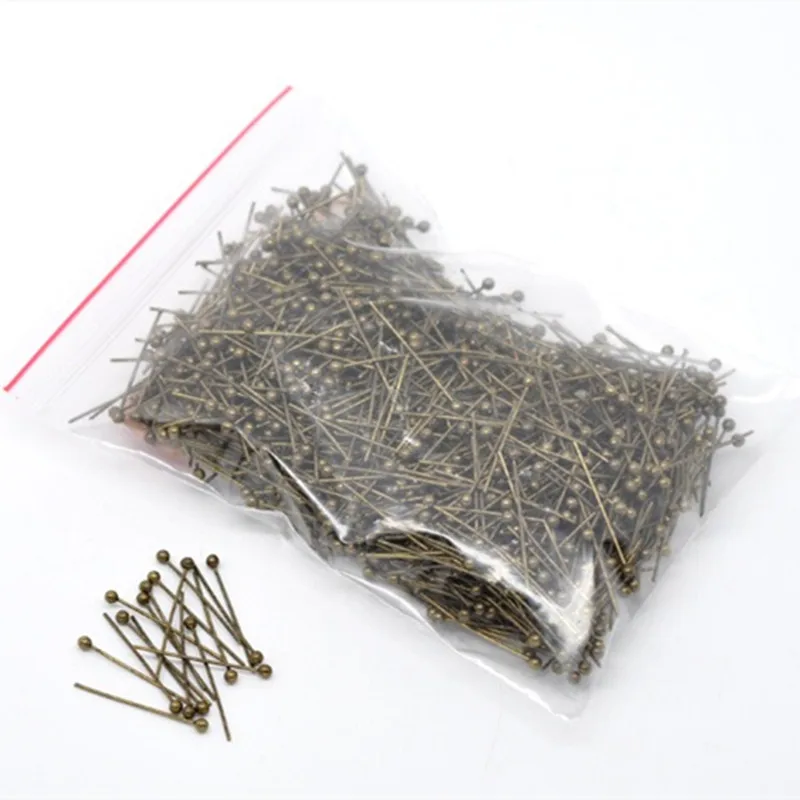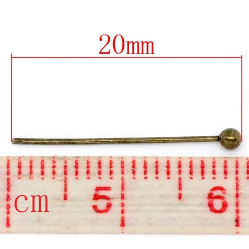 DoreenBeads медные булавки с шариковой головкой, античная бронза, сделай сам, изготовление сережек, Ювелирная фурнитура 20 мм в длину, 0,5 мм (24 калибра),1000 шт.