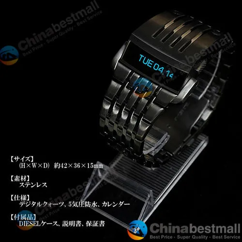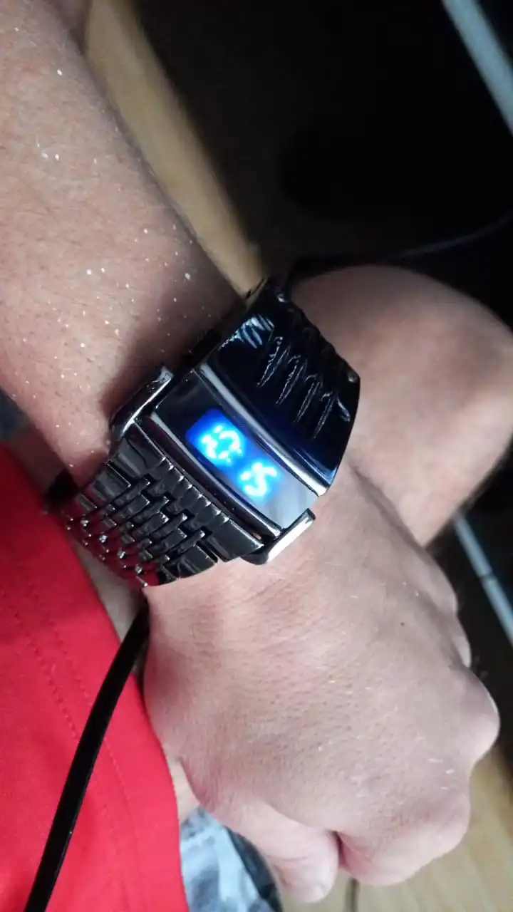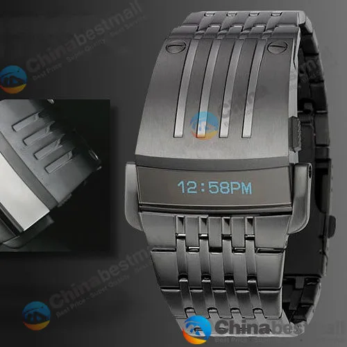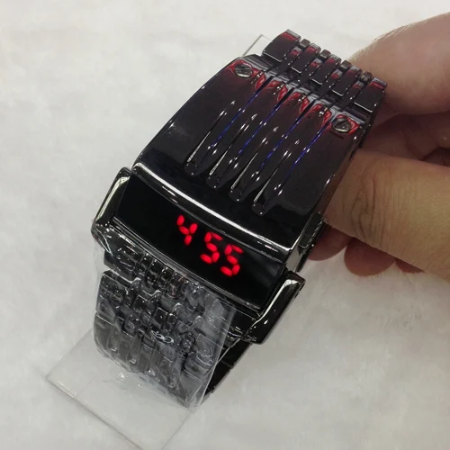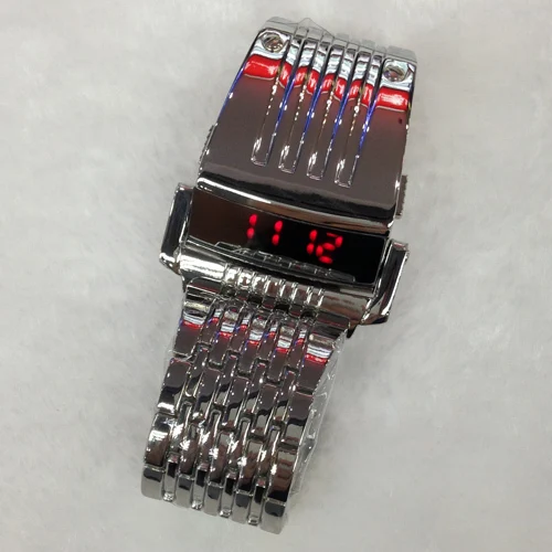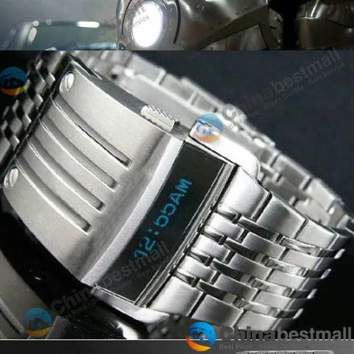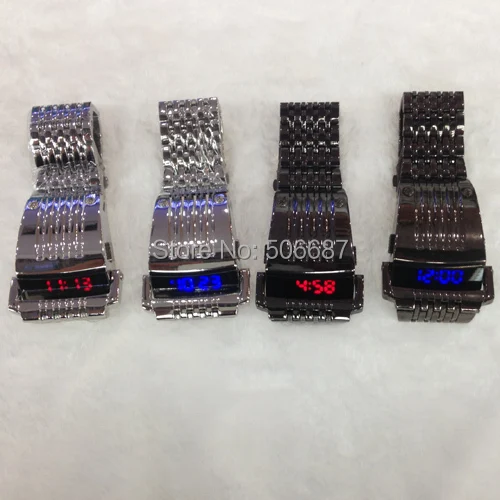 Часы мужские, из нержавеющей стали, с синим и красным светодиодом
