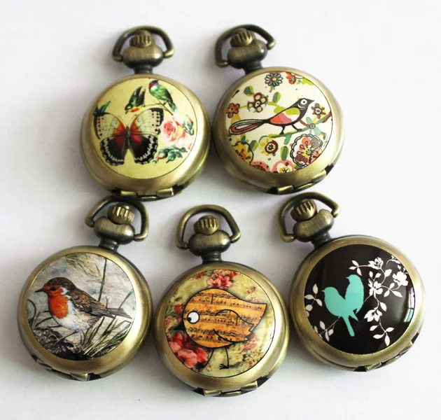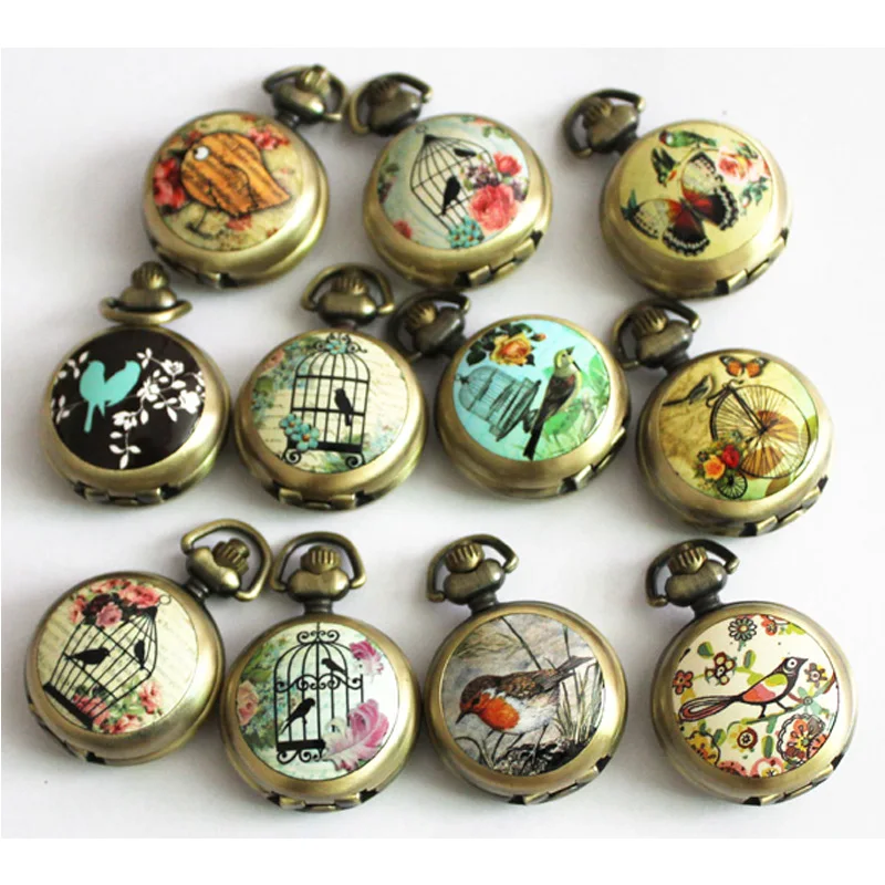 Винтажные латунные карманные часы-бабочки (11 шт.лот), ожерелье, зеркальные часы, шторка, коробка для слепых часовподарок на день рождения, Рождество. Таймер