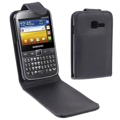 Черный Вертикальный кожаный чехол-книжка для телефона Samsung Galaxy Y Pro B5510