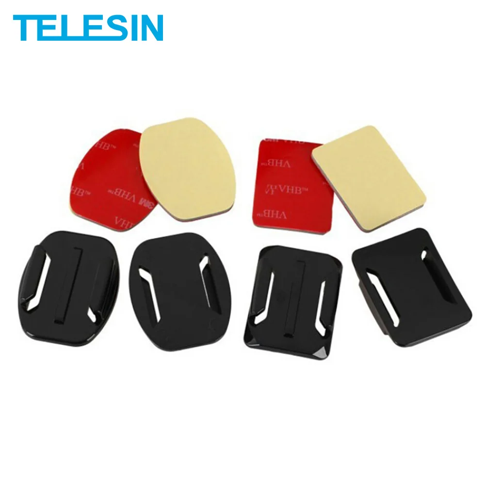 TELESIN 2 шт. плоский Клей + 2 шт. изогнутое клейкое крепление для GoPro Hero для DJI Osmo Action для Xiaomi Yi SJCAM аксессуары