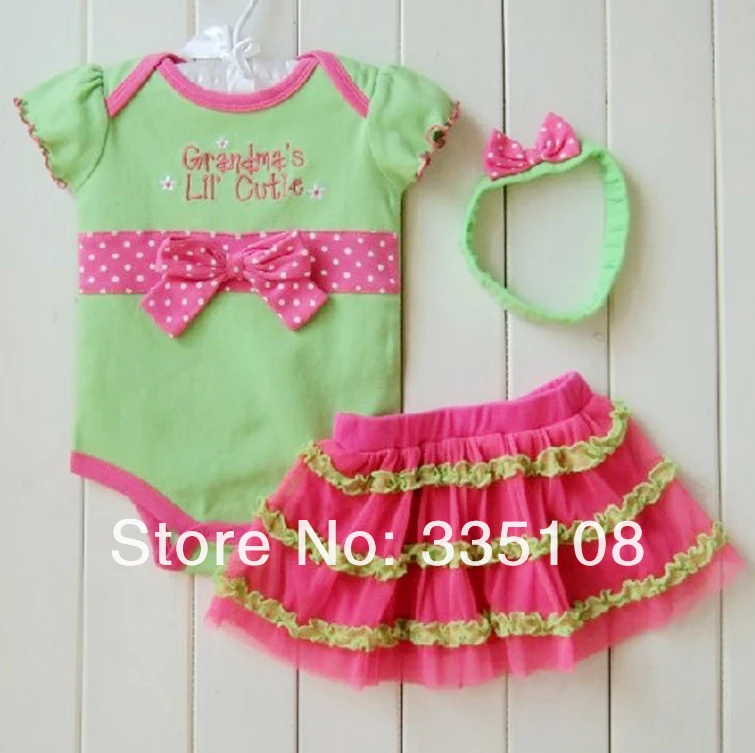 Летняя одежда для маленьких девочек, комплекты одежды из 3 предметов для новорожденных, детские костюмы для младенцев, боди для девочек (комбинезон + юбка + повязка на голову)