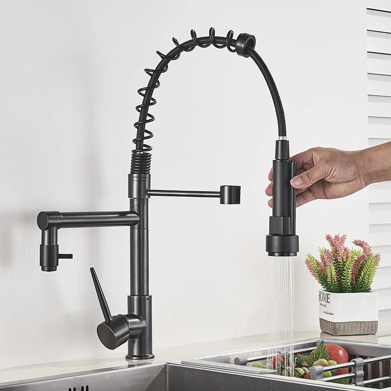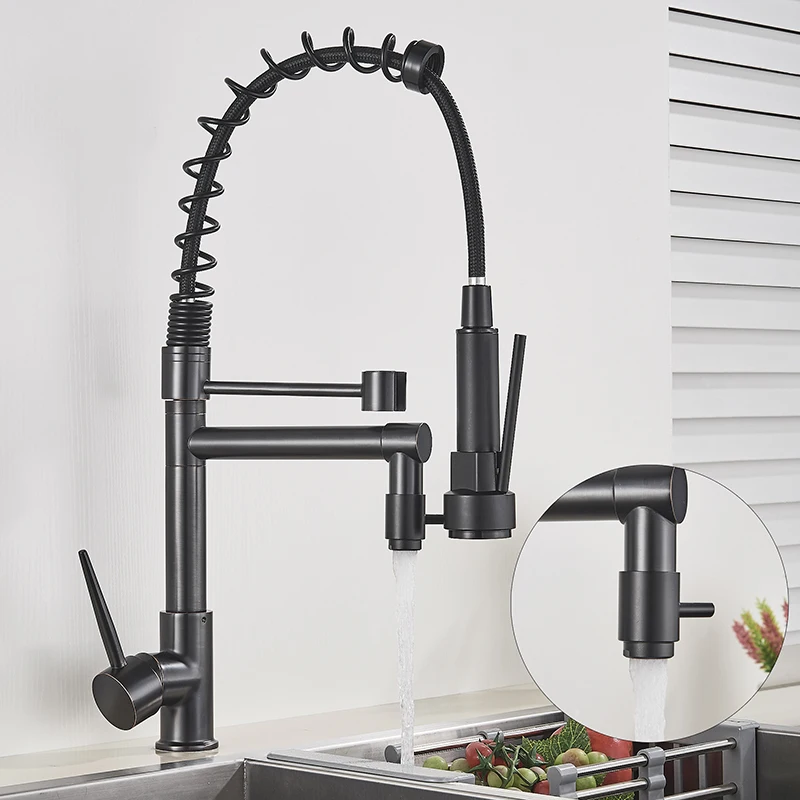 Черный кухонный смеситель Shinesia, выдвижной кран для раковины с двойным носиком, 25 типов, для горячей и холодной воды