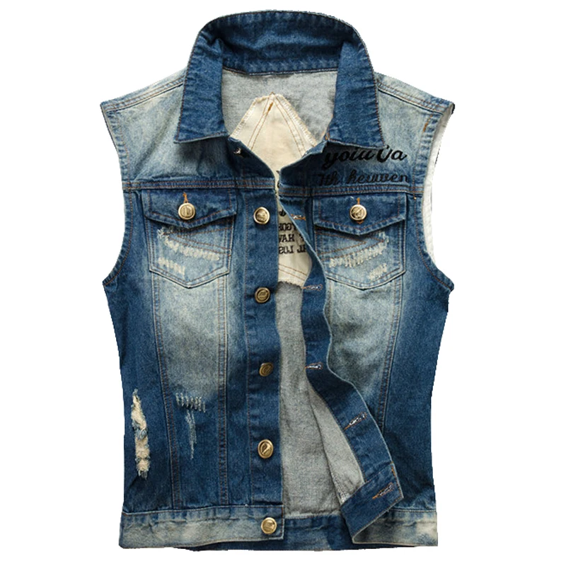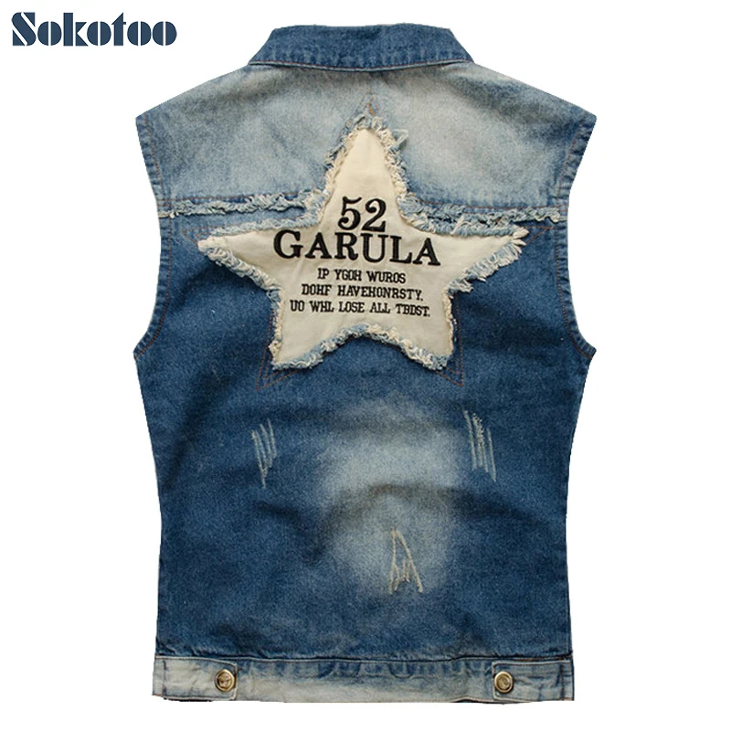 Жилет мужской джинсовый Sokotoo, верхняя одежда с пятиконечной звездой и надписью, пэчворк, джинсовая куртка, большие размеры, бесплатная доставка
