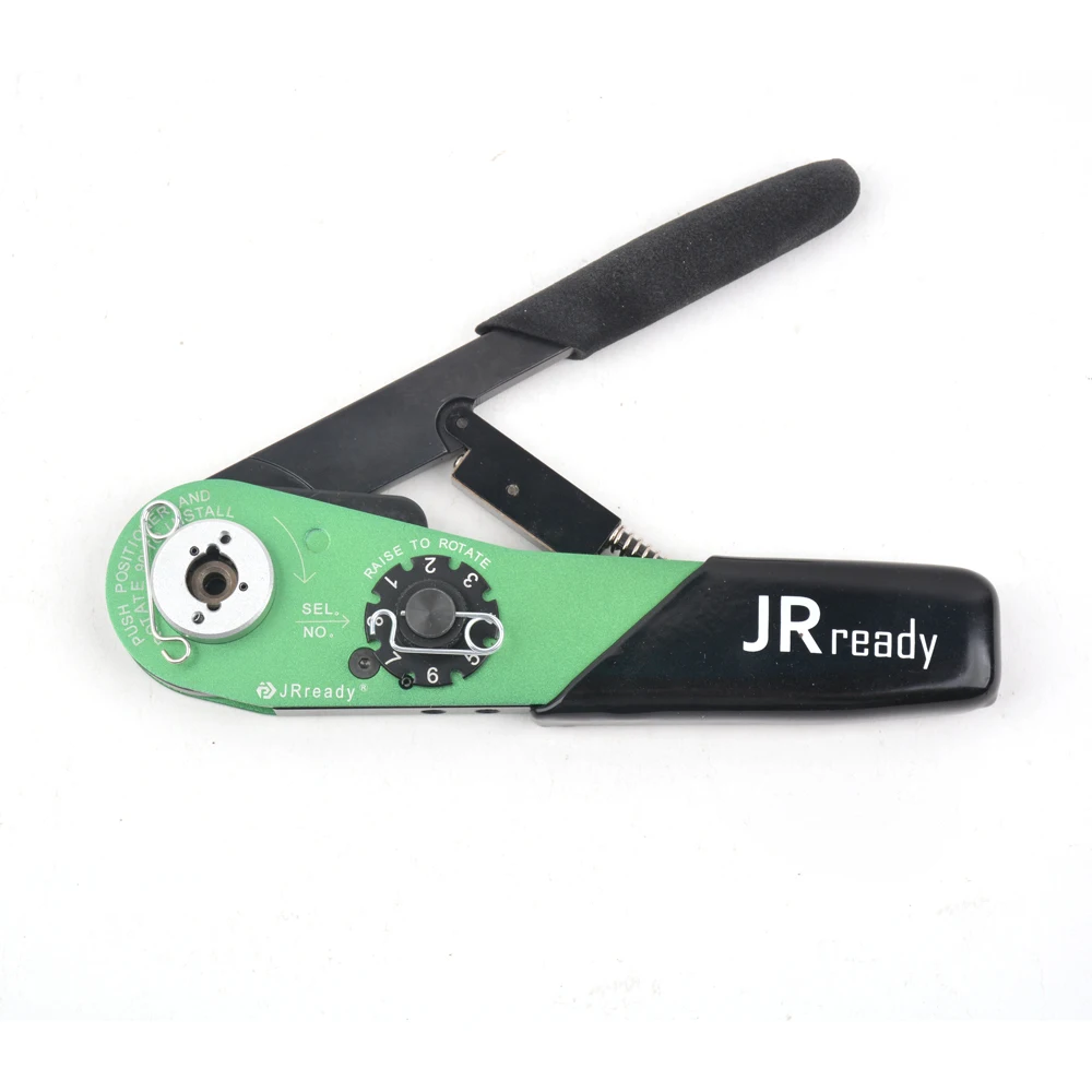 Обжимной инструмент принимает кривой механизм движения, его прикладное усилие переносится через четыре кривых в головную полость правой рукоятки плоскогубцев к четырем индентерам. Четыре стороны делают центрилепесток линейным движением, что делает его передние конечные зубы обжимными контактами для завершения процесса обжима. Контролируемый циклом прецизионный храповик обеспечивает консистенцию впечатления и качество обжима проводов и контактов.