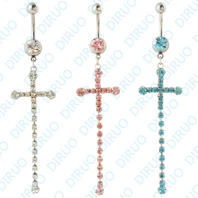 5 шт.партия, 3 цвета, Кристальный крест, кольцо для живота, ювелирное изделие, оптовая продажа, пупковое кольцо, пирсинг, ювелирное изделие, без никеля