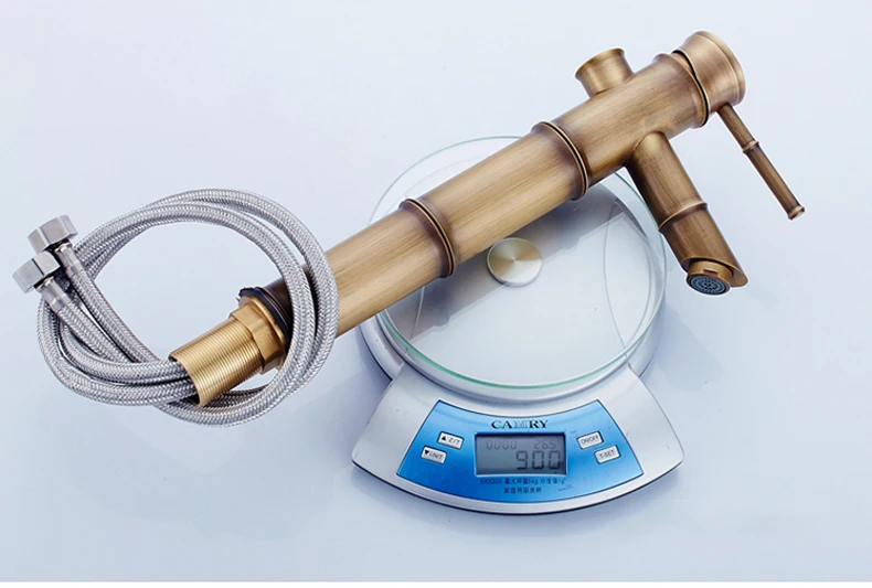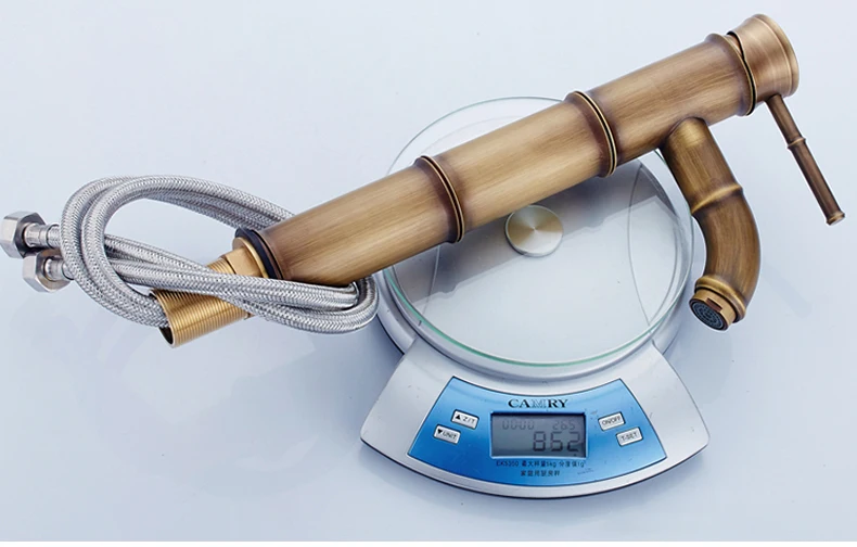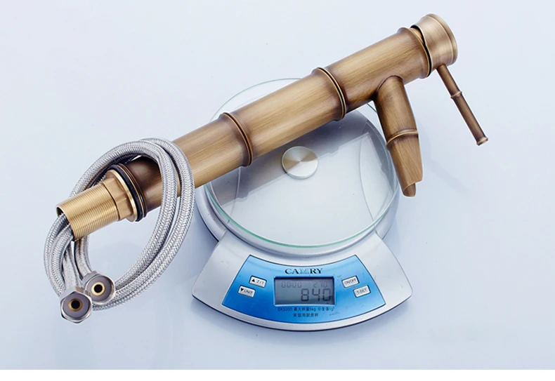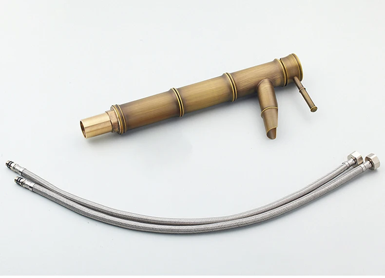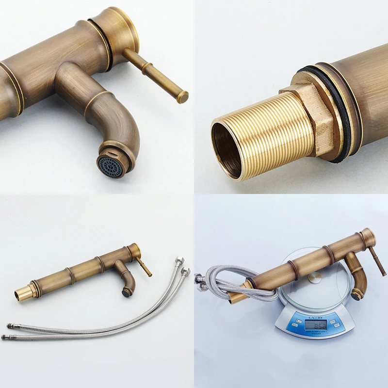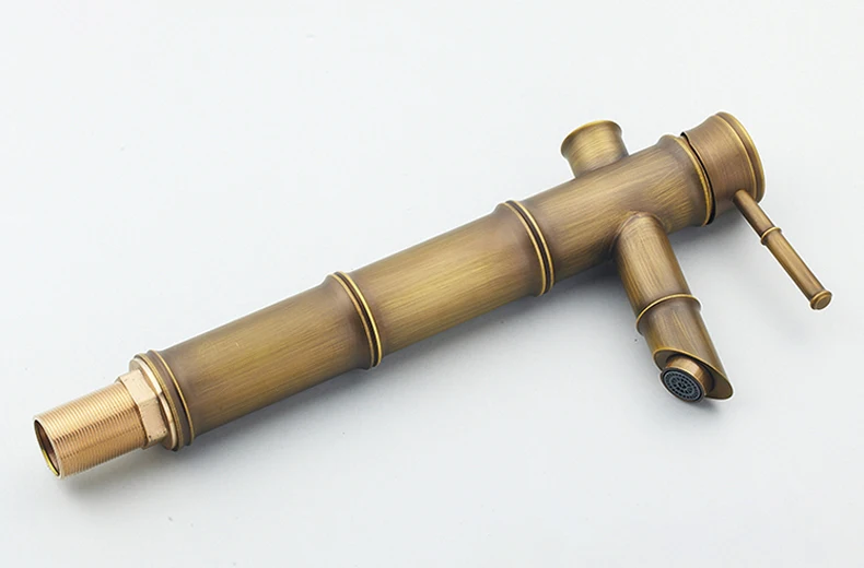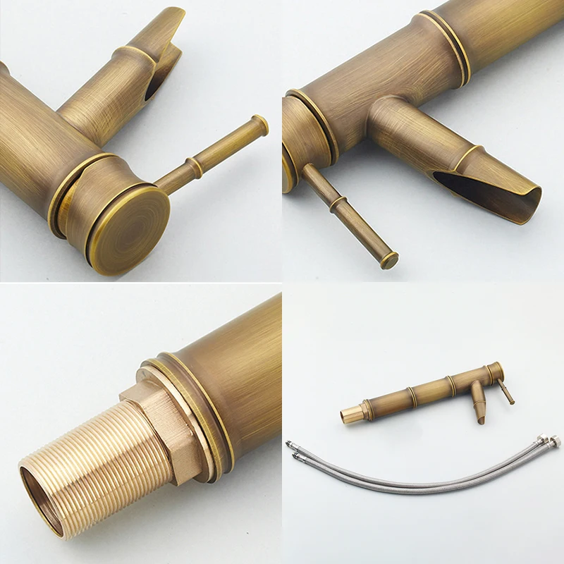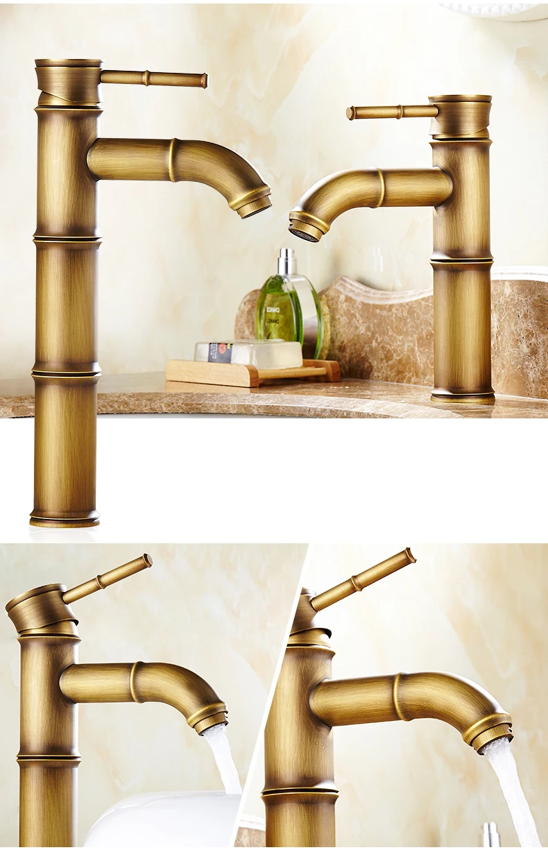 Античный латунный кран-водопад для ванной, бамбуковый смеситель для раковины, винтажный кран для горячей и холодной воды, одно отверстие